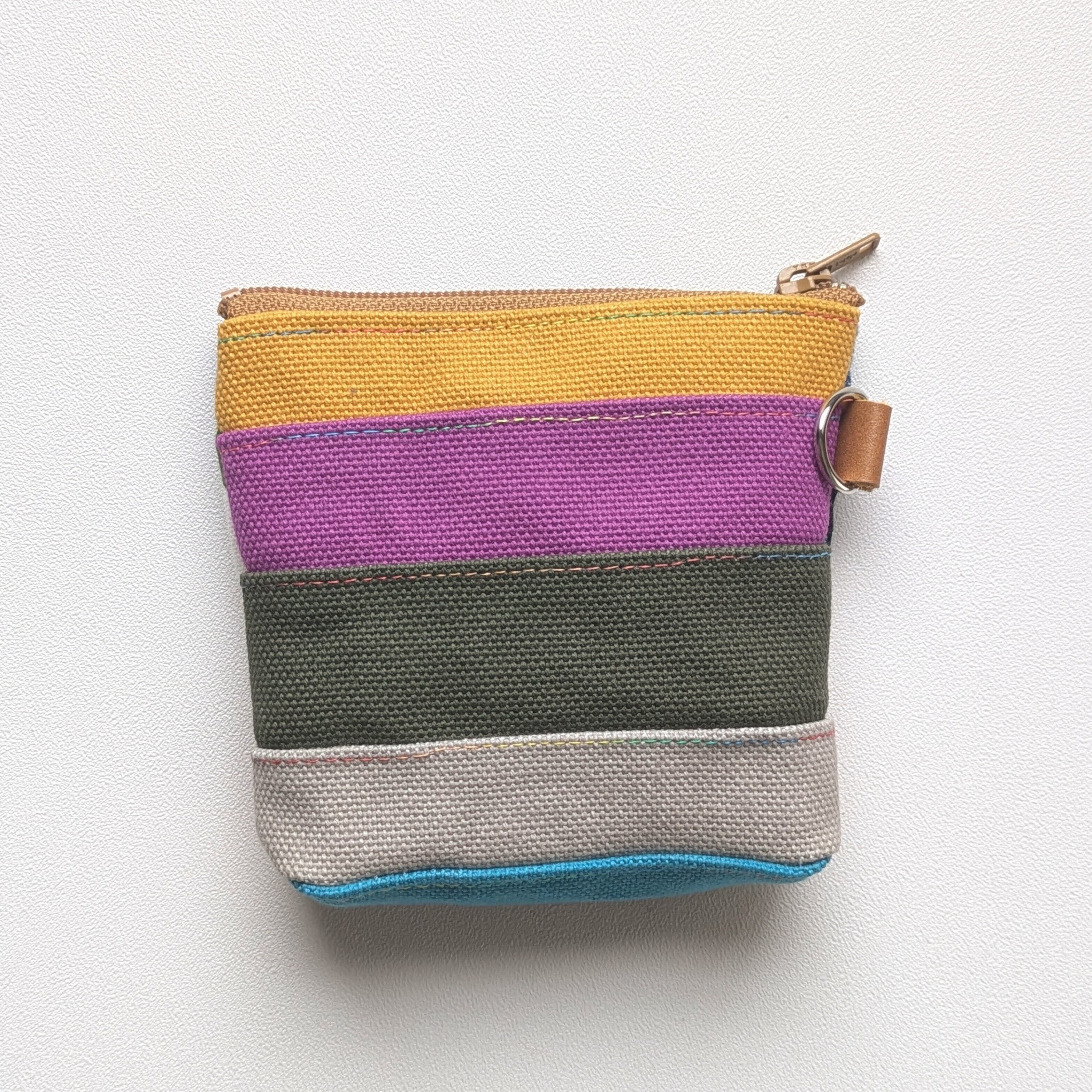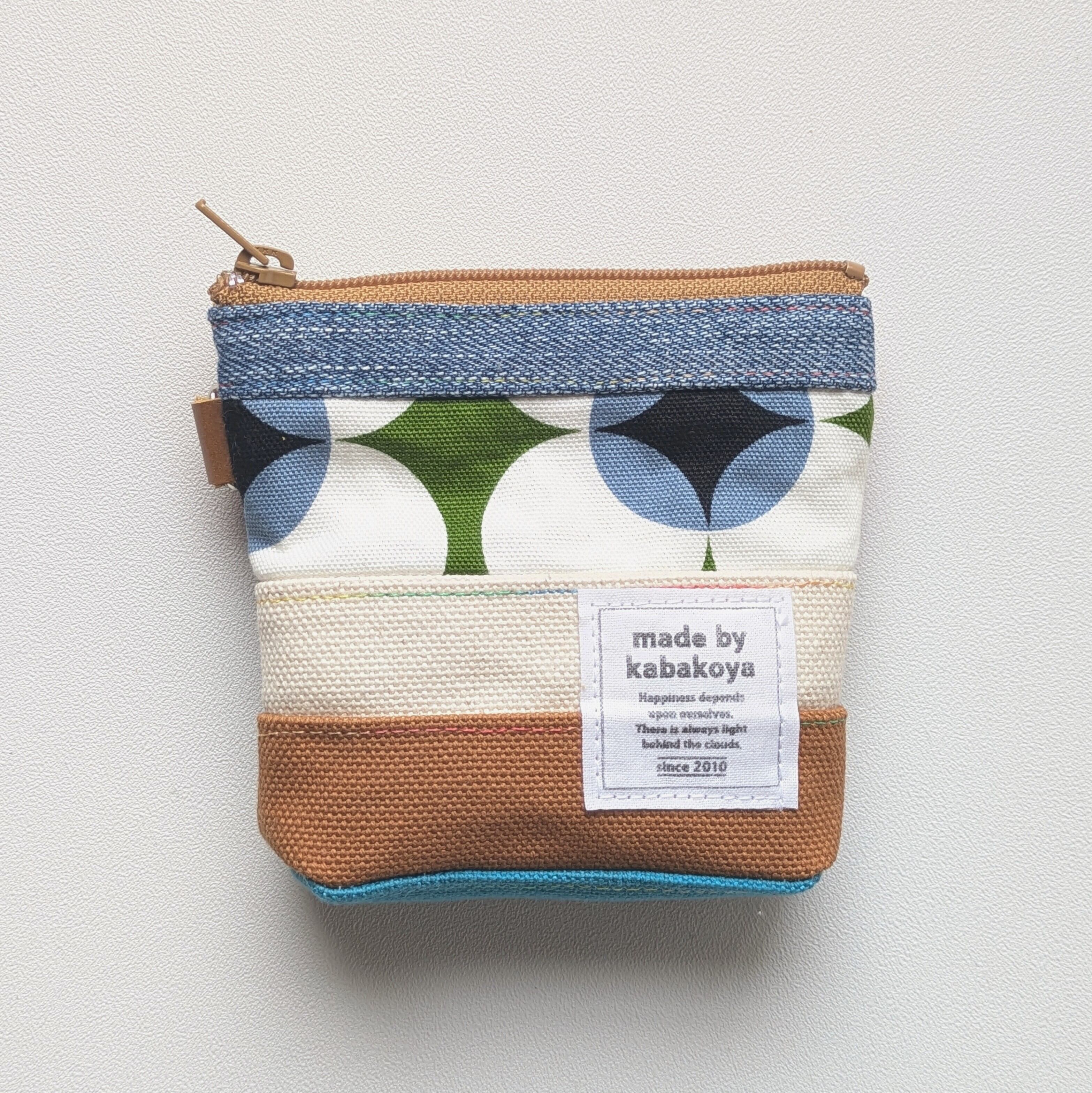 このポーチは、ショルダーやサコッシュ、ポーチなどをを作るときに出る柄物生地や帆布、デニムの『はぎれ』を活用しています。