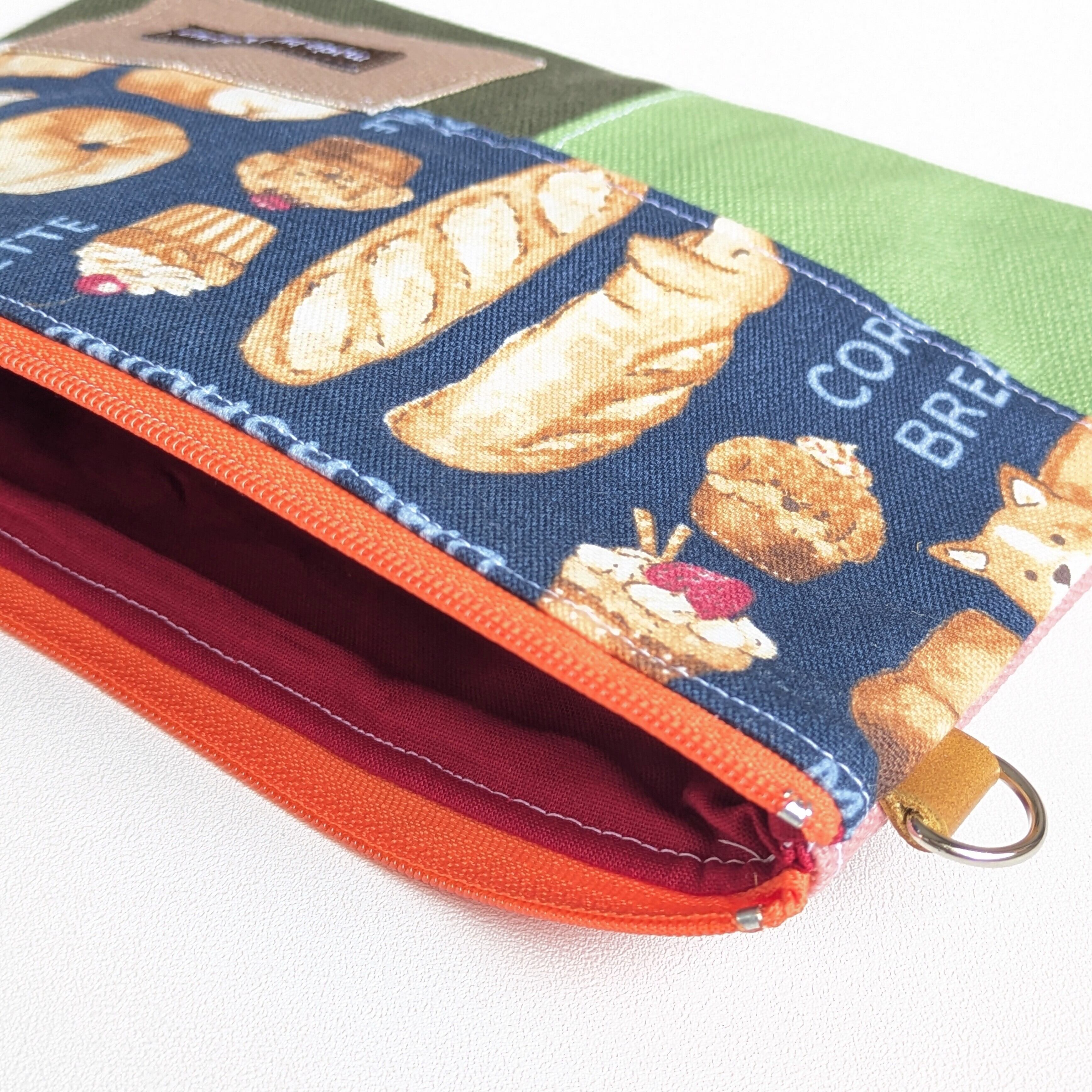 このポーチは、ショルダーやサコッシュ、ポーチなどを作るときに出る柄物生地や帆布の『はぎれ』を活用しています。