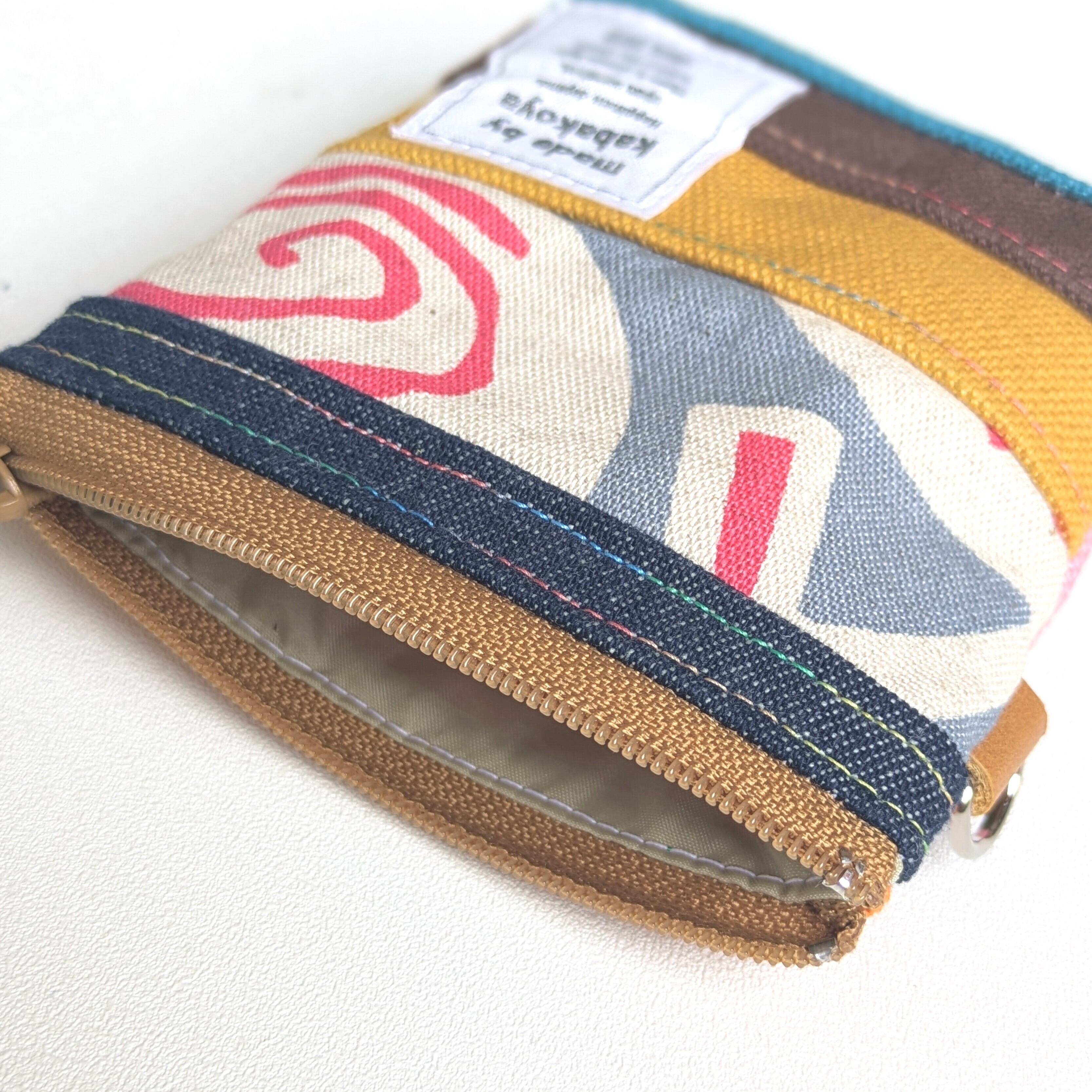このポーチは、ショルダーやサコッシュ、ポーチなどを作るときに出る柄物生地や帆布、デニムの『はぎれ』を活用しています。