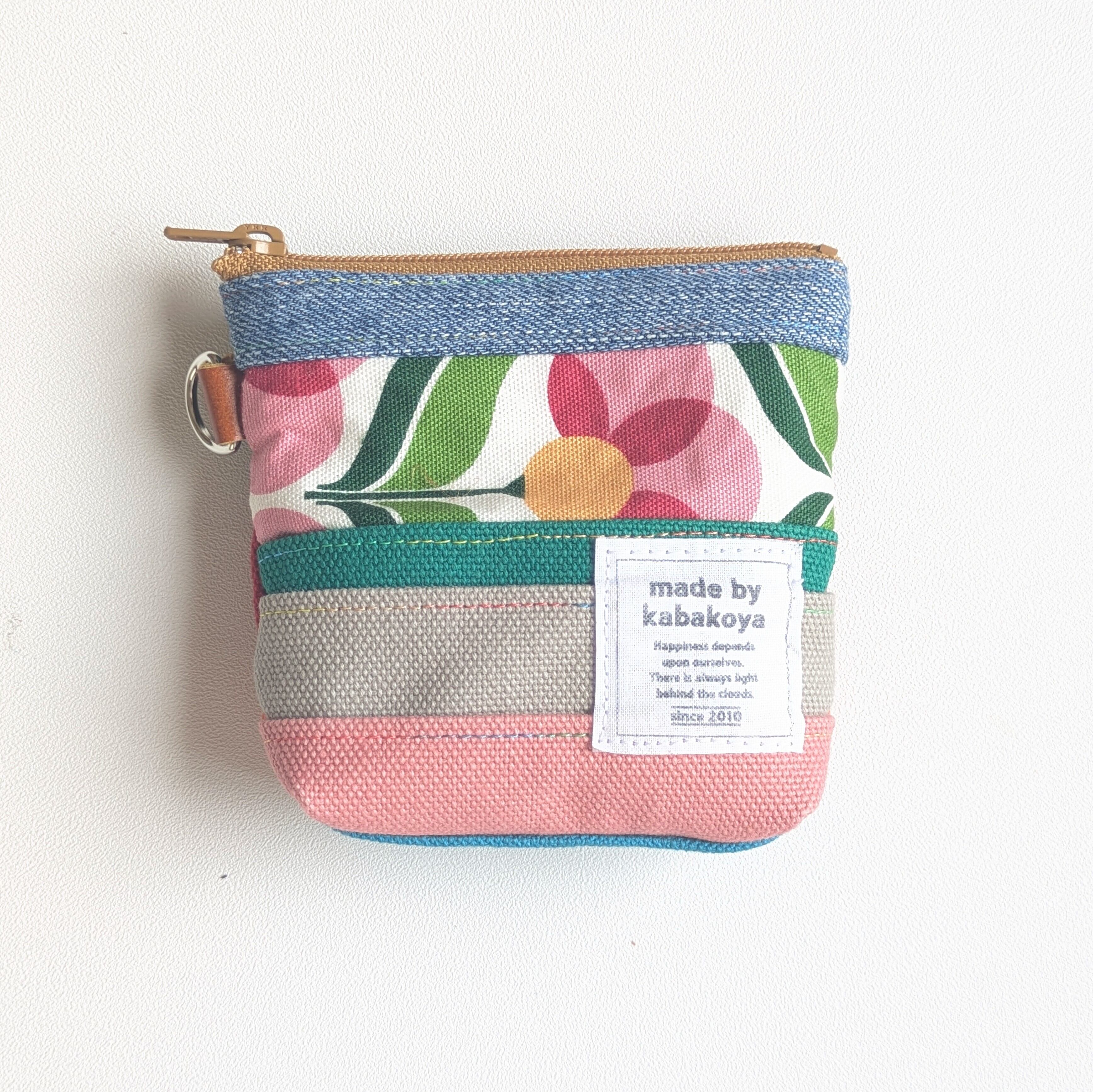 このポーチは、ショルダーやサコッシュ、ポーチなどを作るときに出る柄物生地や帆布、デニムの『はぎれ』を活用しています。