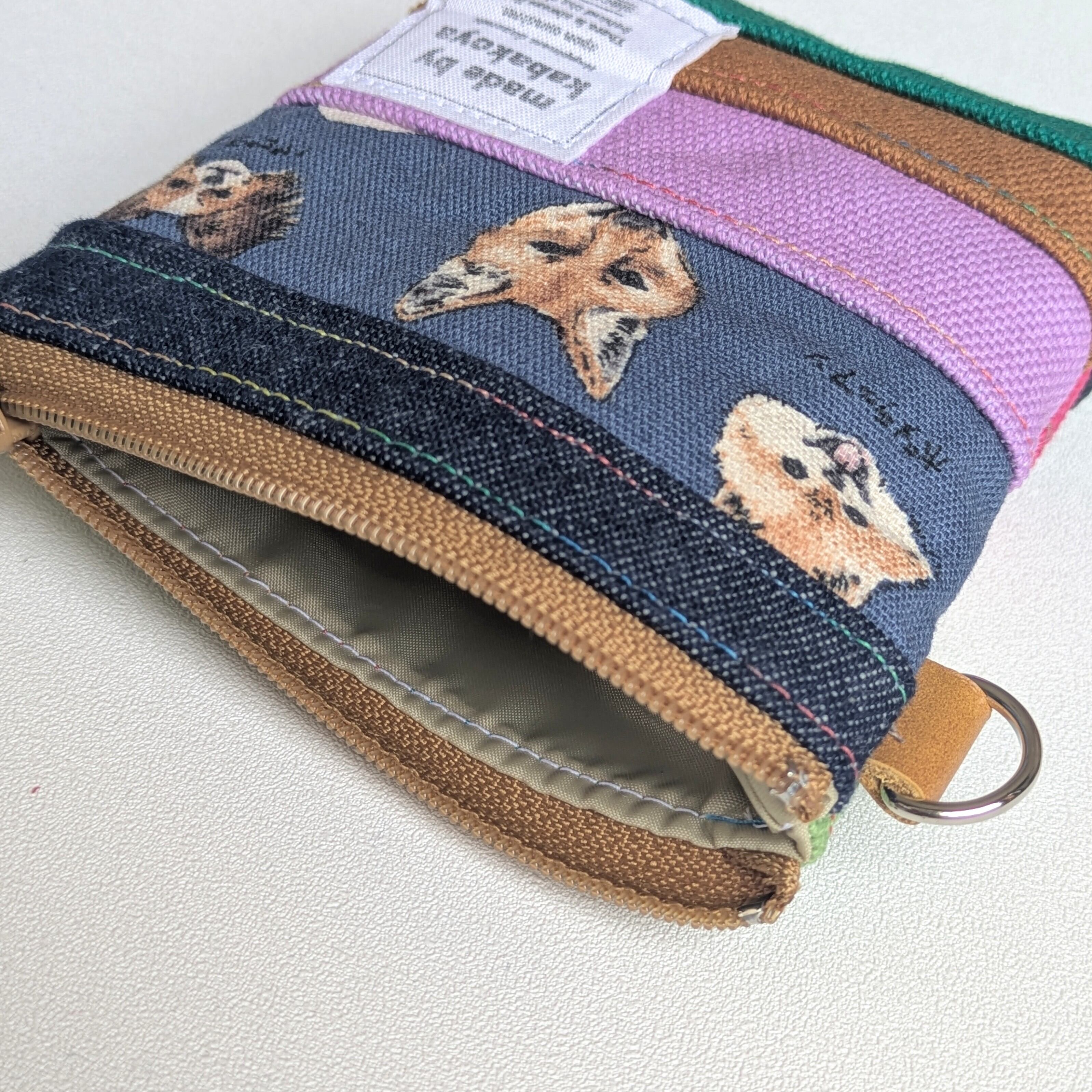 このポーチは、ショルダーやサコッシュ、ポーチなどを作るときに出る柄物生地や帆布、デニムの『はぎれ』を活用しています。