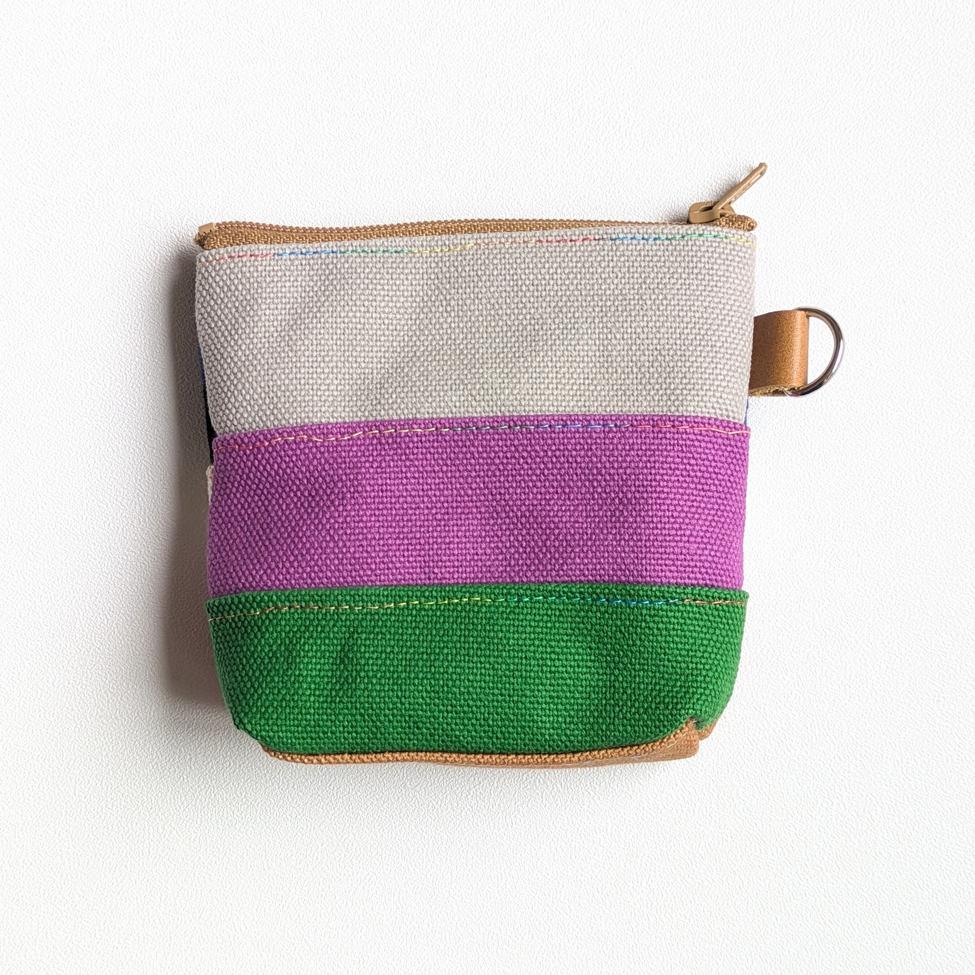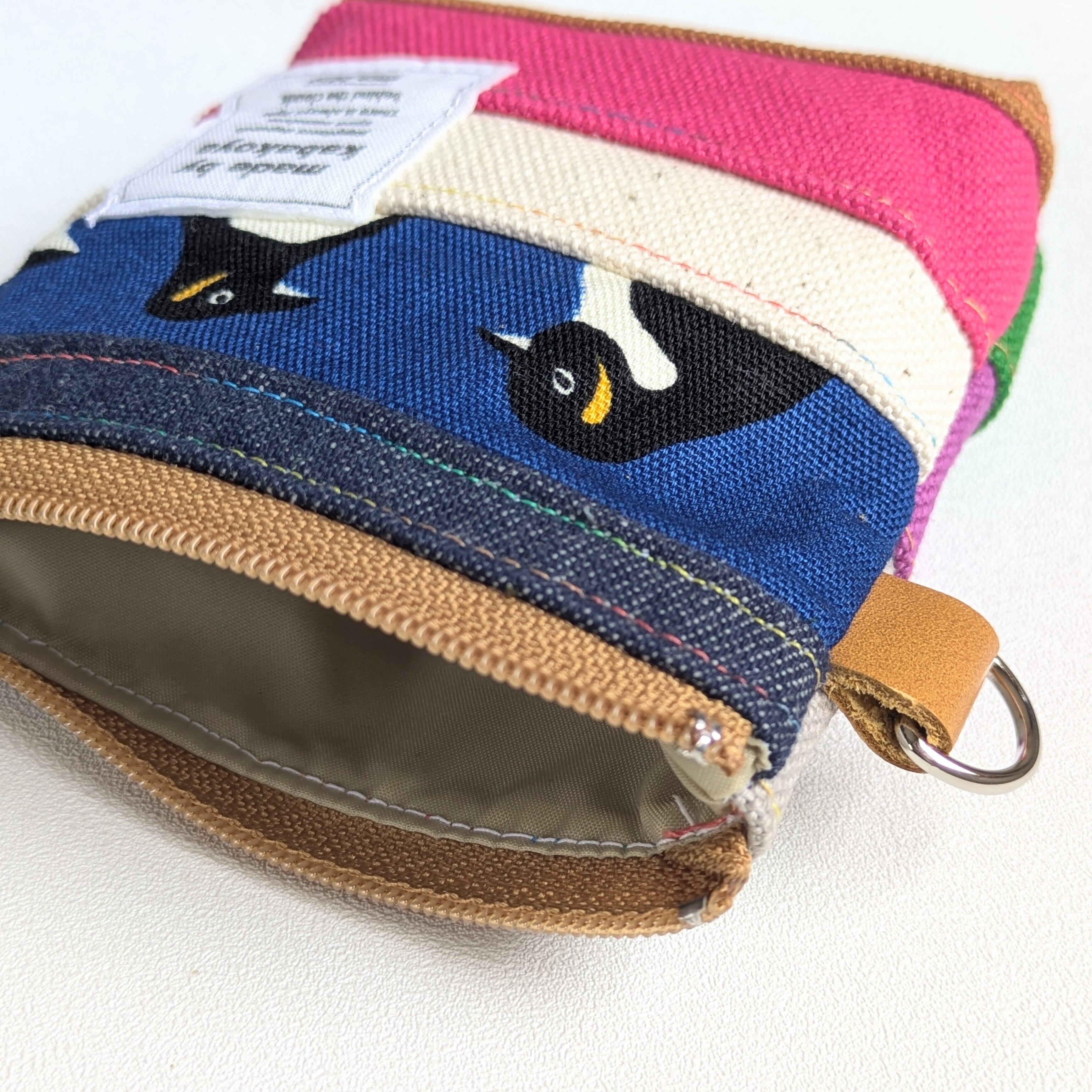 このポーチは、ショルダーやサコッシュ、ポーチなどを作るときに出る柄物生地や帆布、デニムの『はぎれ』を活用しています。
