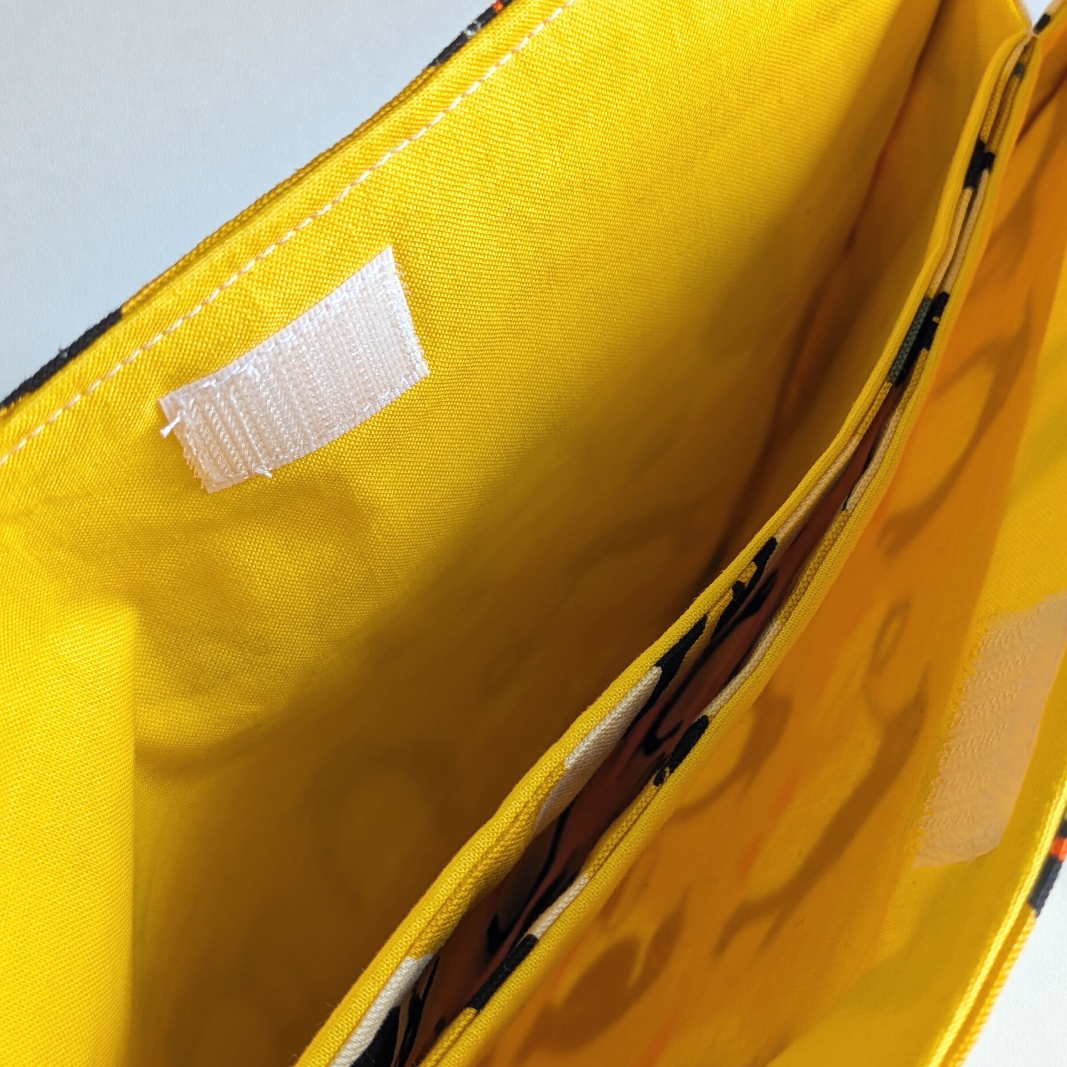 内側は3つのポケットに分かれていて、両サイドのポケットは幅約23cm、真ん中のポケットは幅約18cmです。
