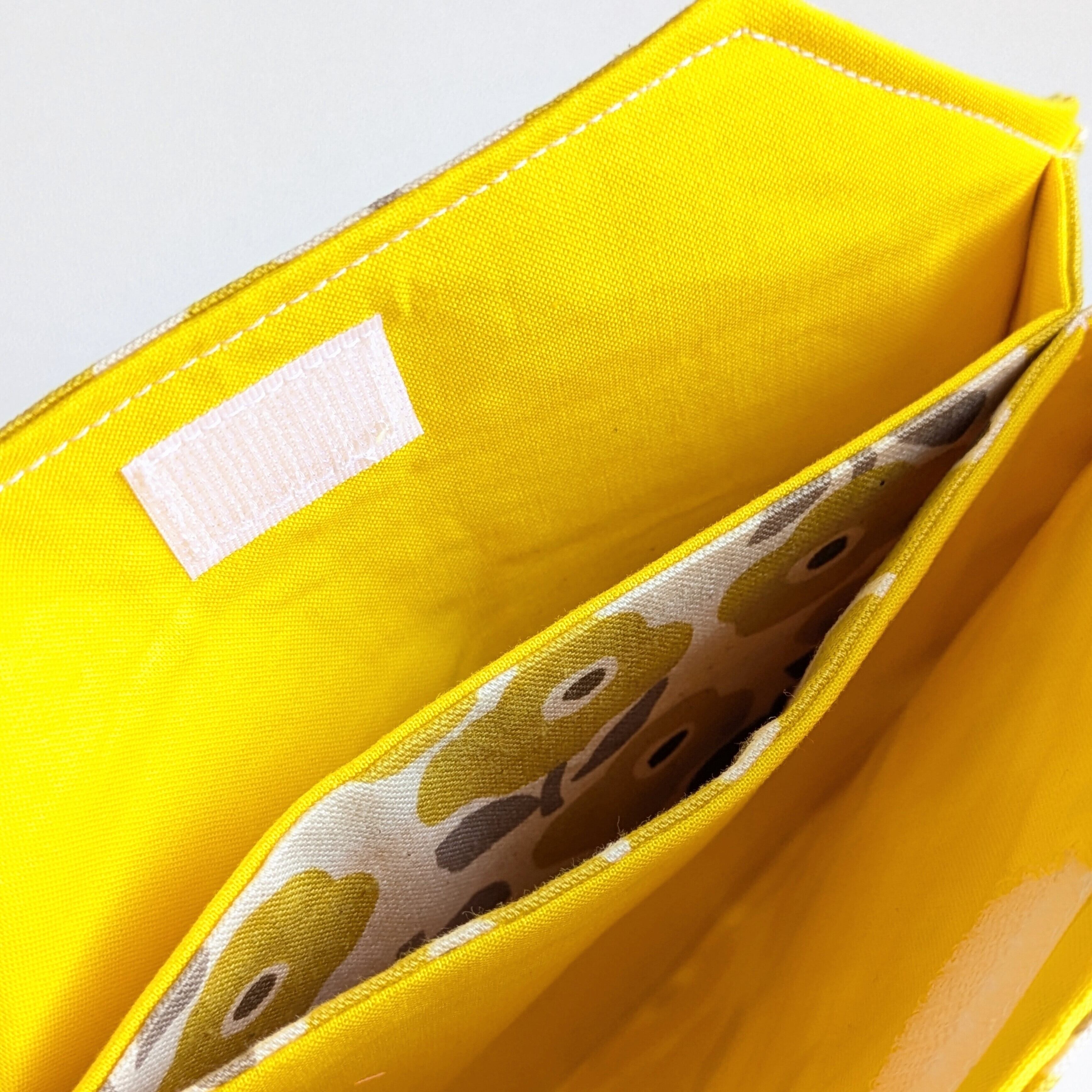 ぺたんこですが中に物を入れると両側がマチのように広がるため、見た目よりもたっぷり入ります。