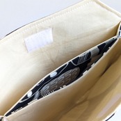 内側は3つのポケットに分かれていて、両サイドのポケットは幅約19cm、真ん中のポケットは幅約14cmです。