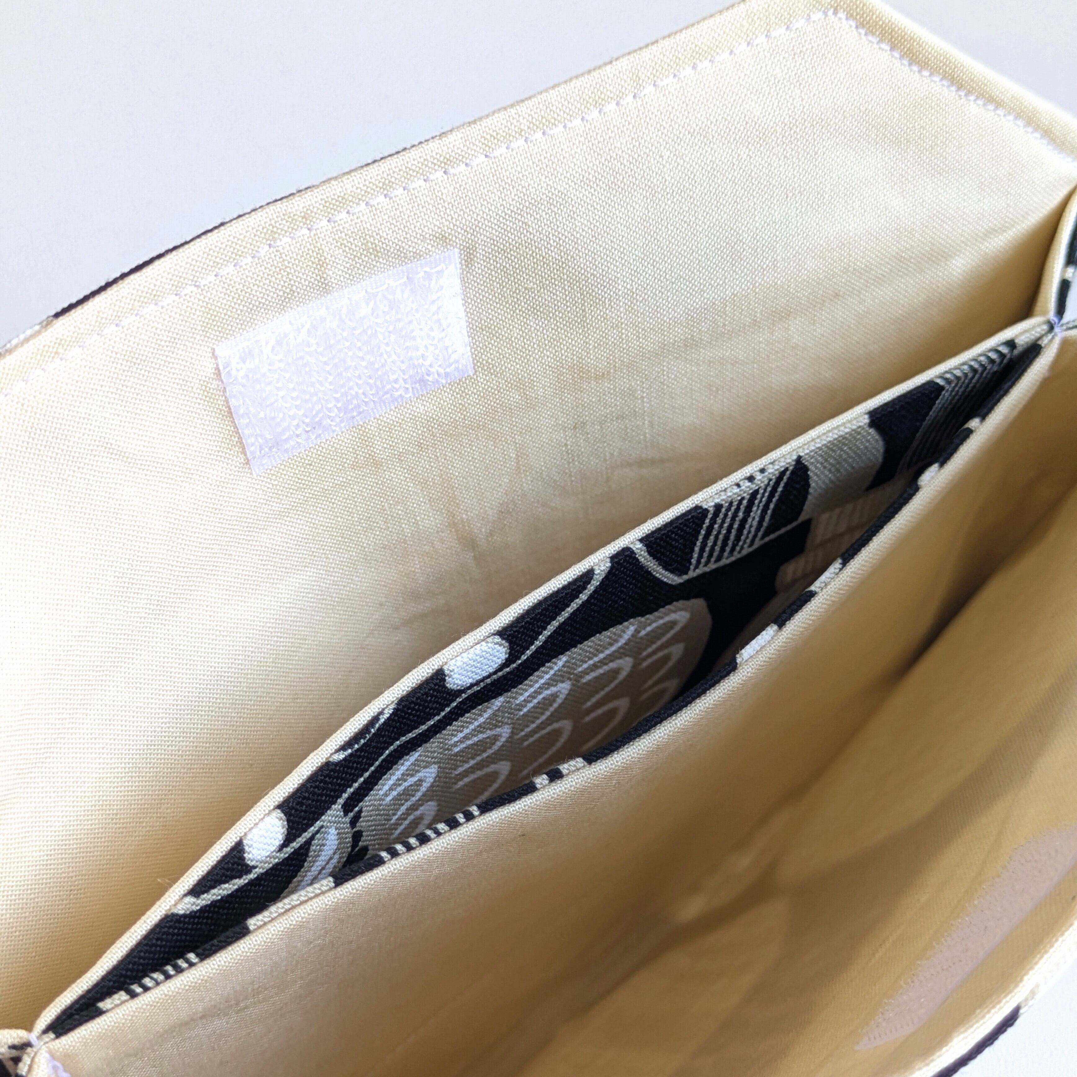 ぺたんこですが中に物を入れると両側がマチのように広がるため、見た目よりもたっぷり入ります。
