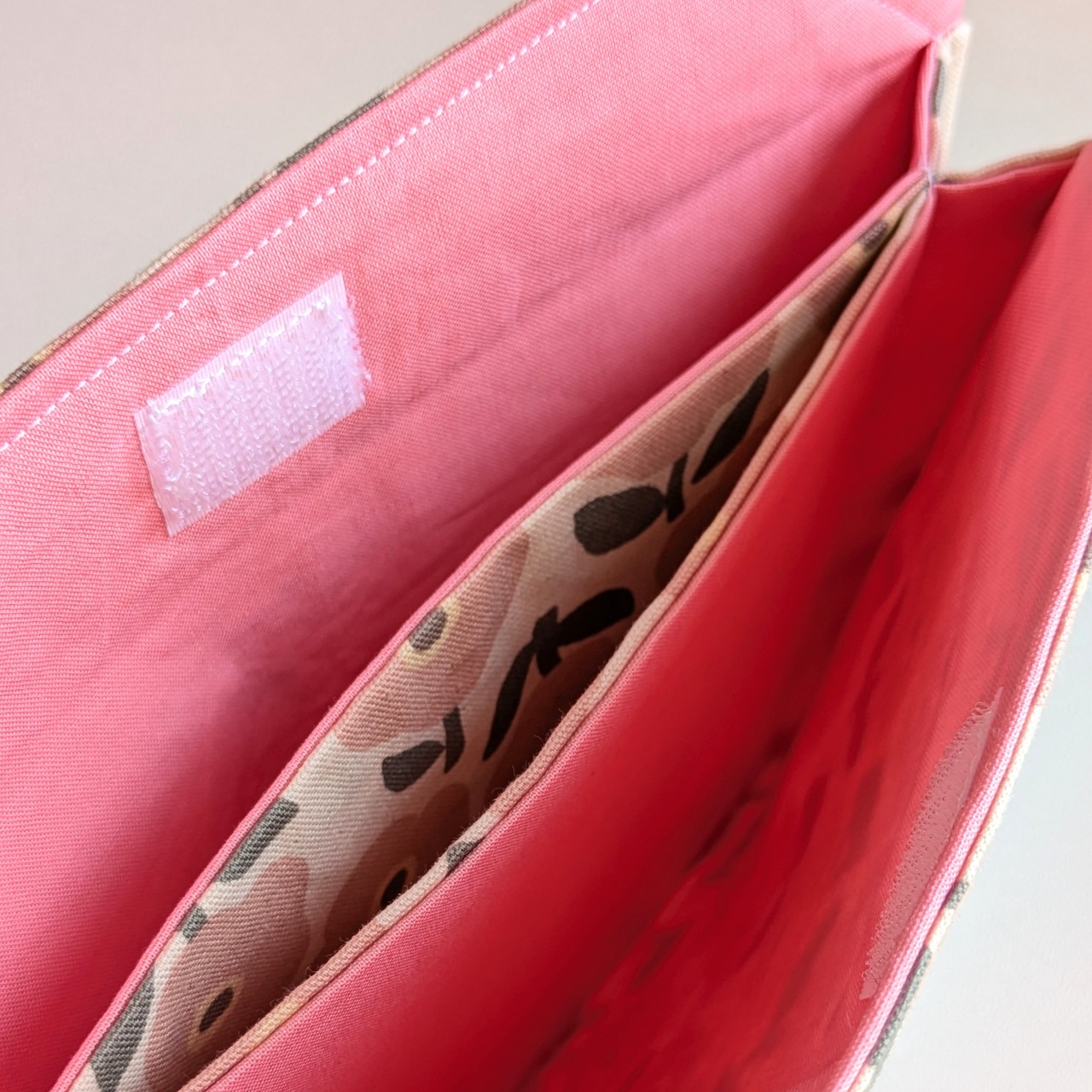 ぺたんこですが中に物を入れると両側がマチのように広がるため、見た目よりもたっぷり入ります。