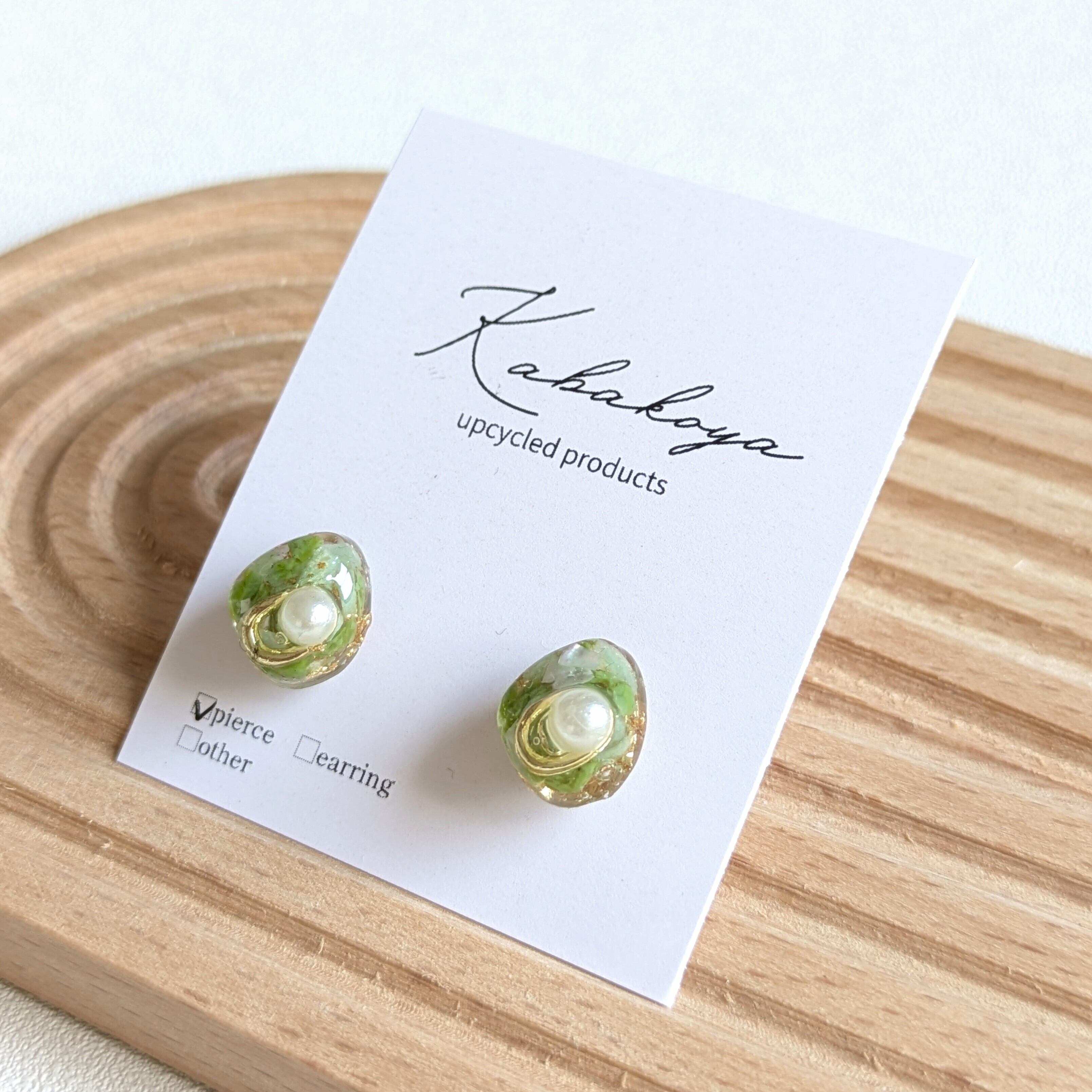 海岸で集めた海洋プラスチックのかけらをピアスにしました。