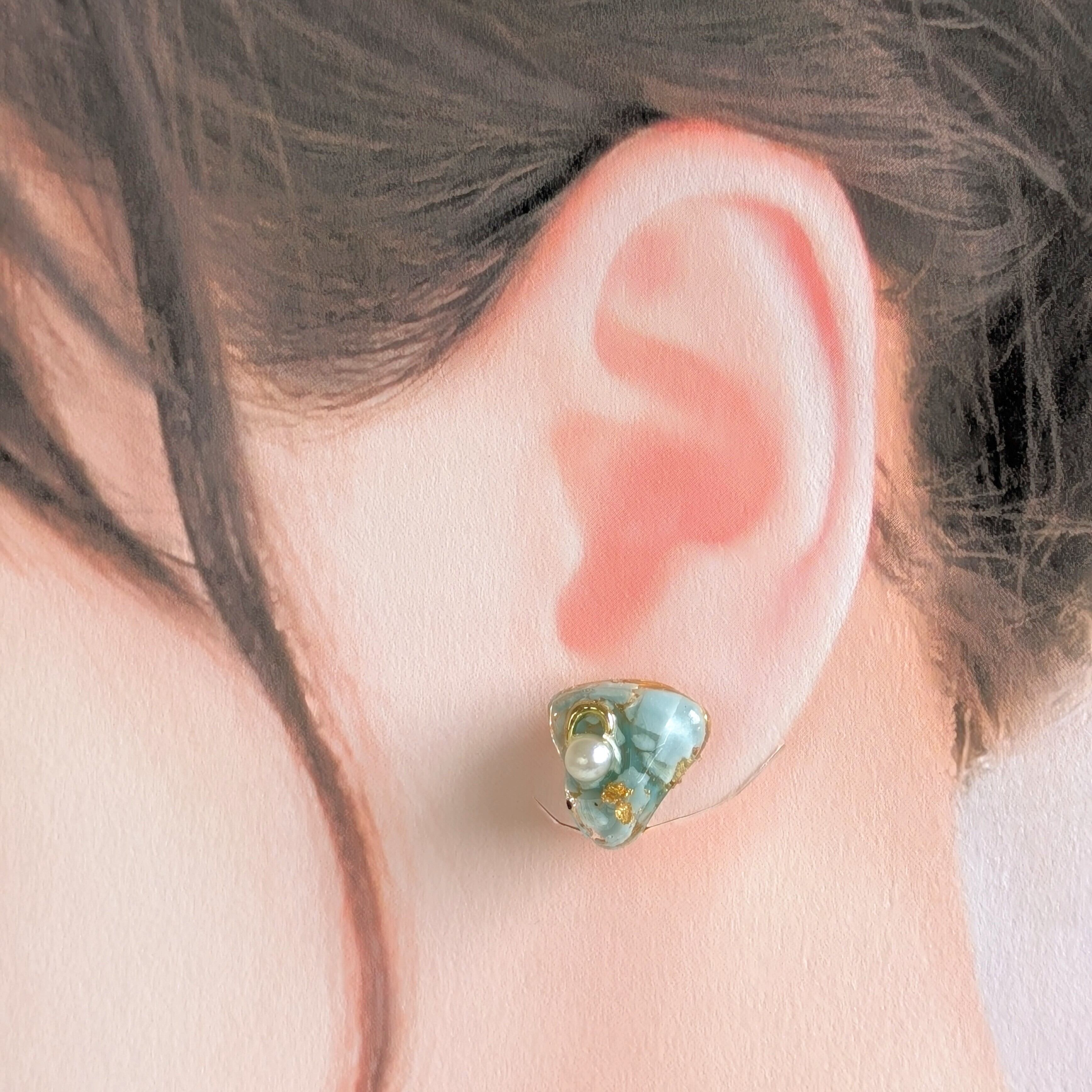 ※長時間の着用でも耳が痛くなりにくいクリップ式のイヤリング金具を使用。