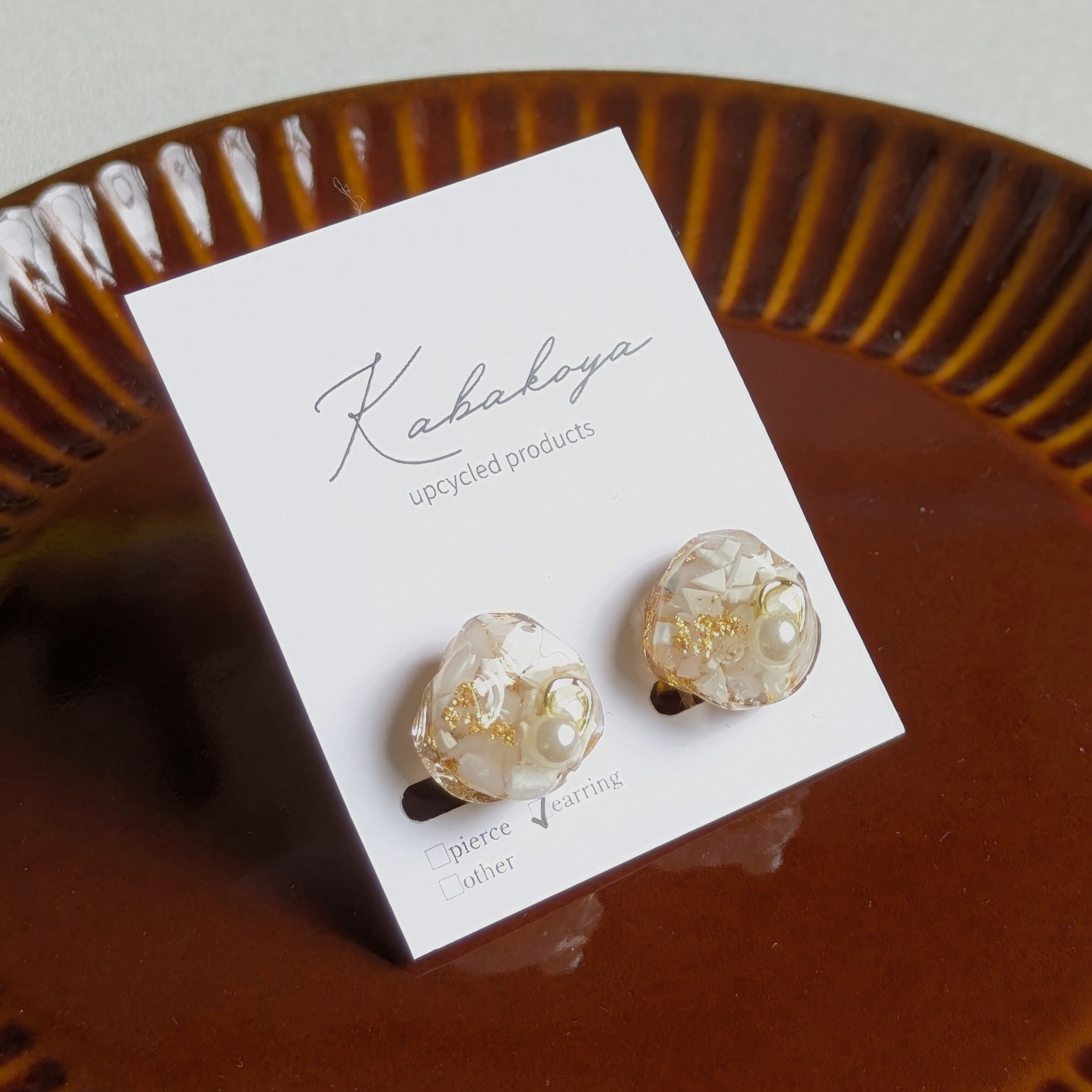 ※長時間の着用でも耳が痛くなりにくいクリップ式のイヤリング金具を使用。