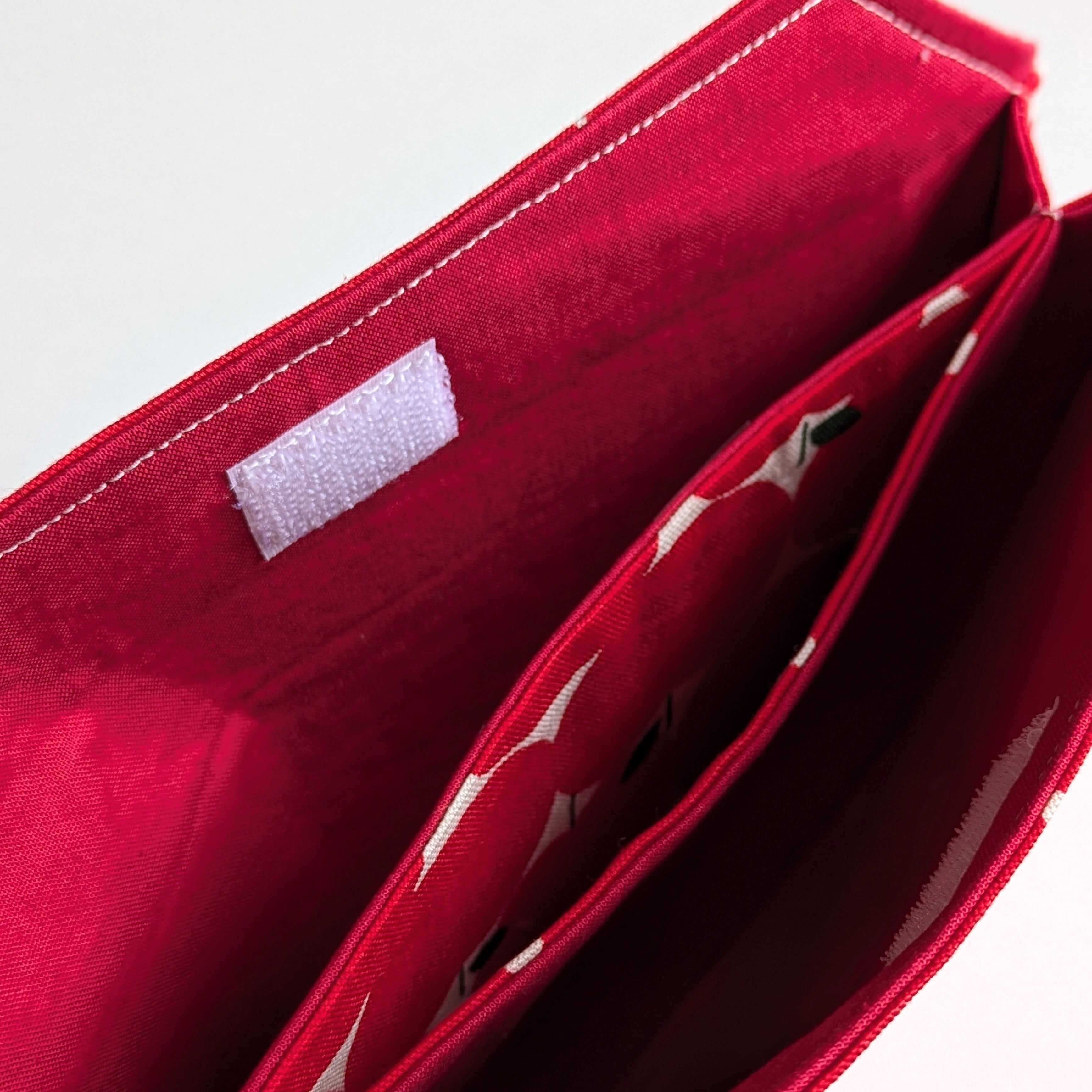 バッグの中で迷子になりがちな細かいもののほか、Lサイズは母子手帳や御朱印帳にちょうどいい大きさです。