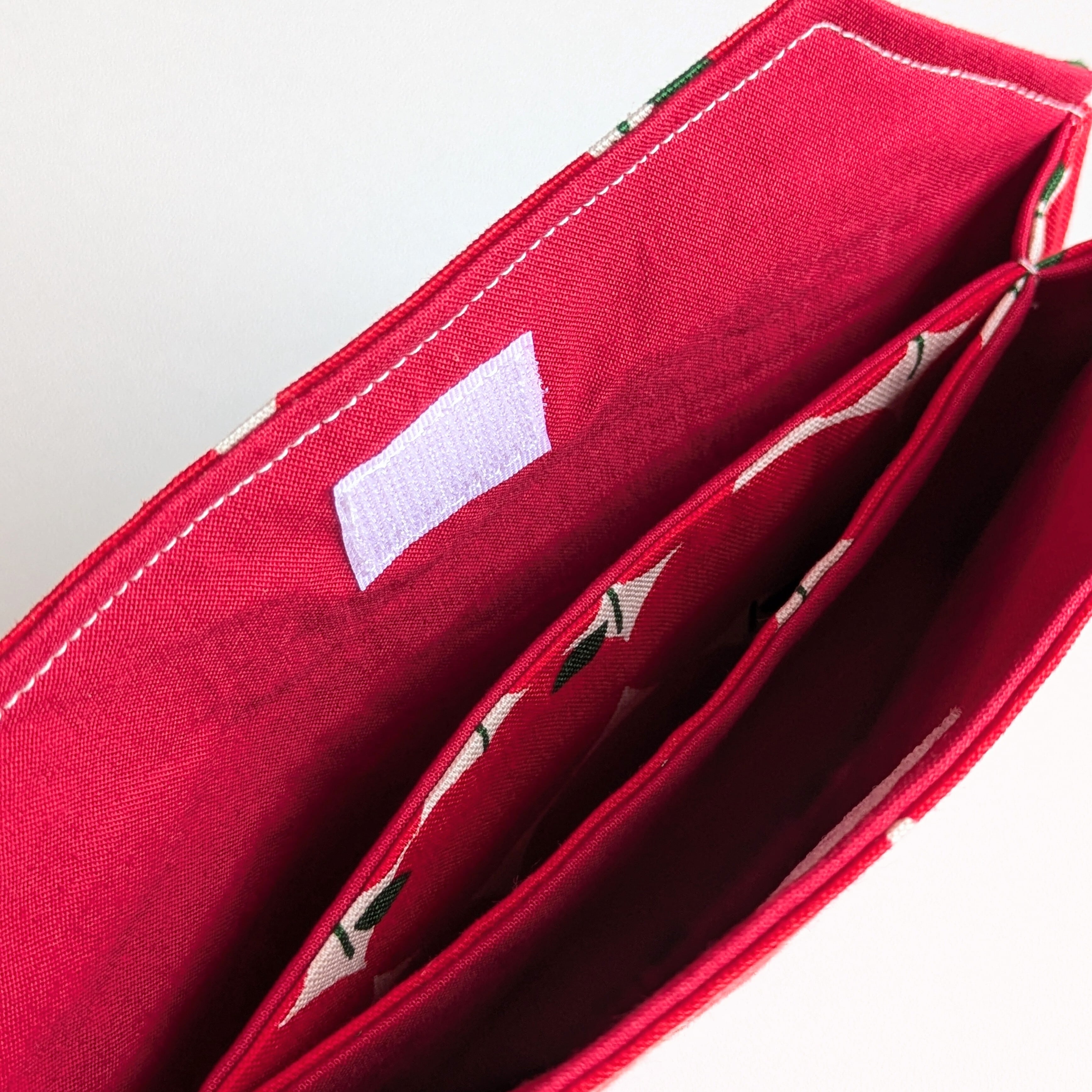 バッグの中で迷子になりがちな細かいもののほか、Mサイズは通帳やお薬手帳にちょうどいい大きさです。