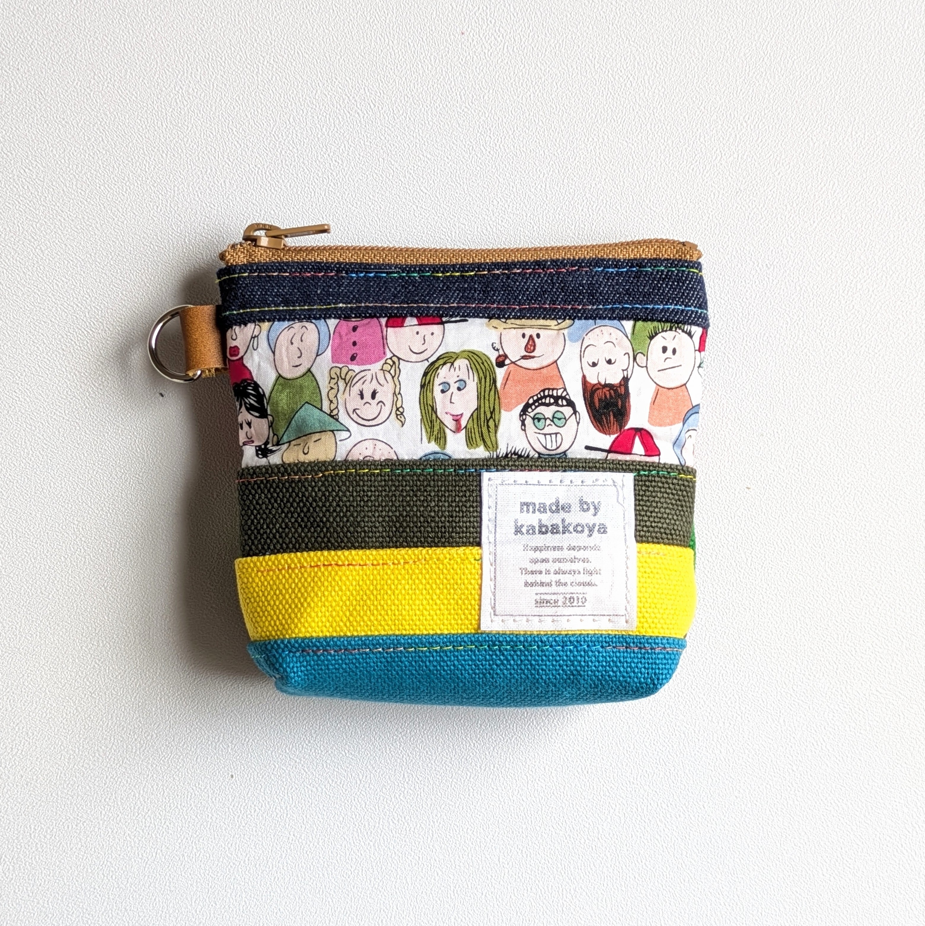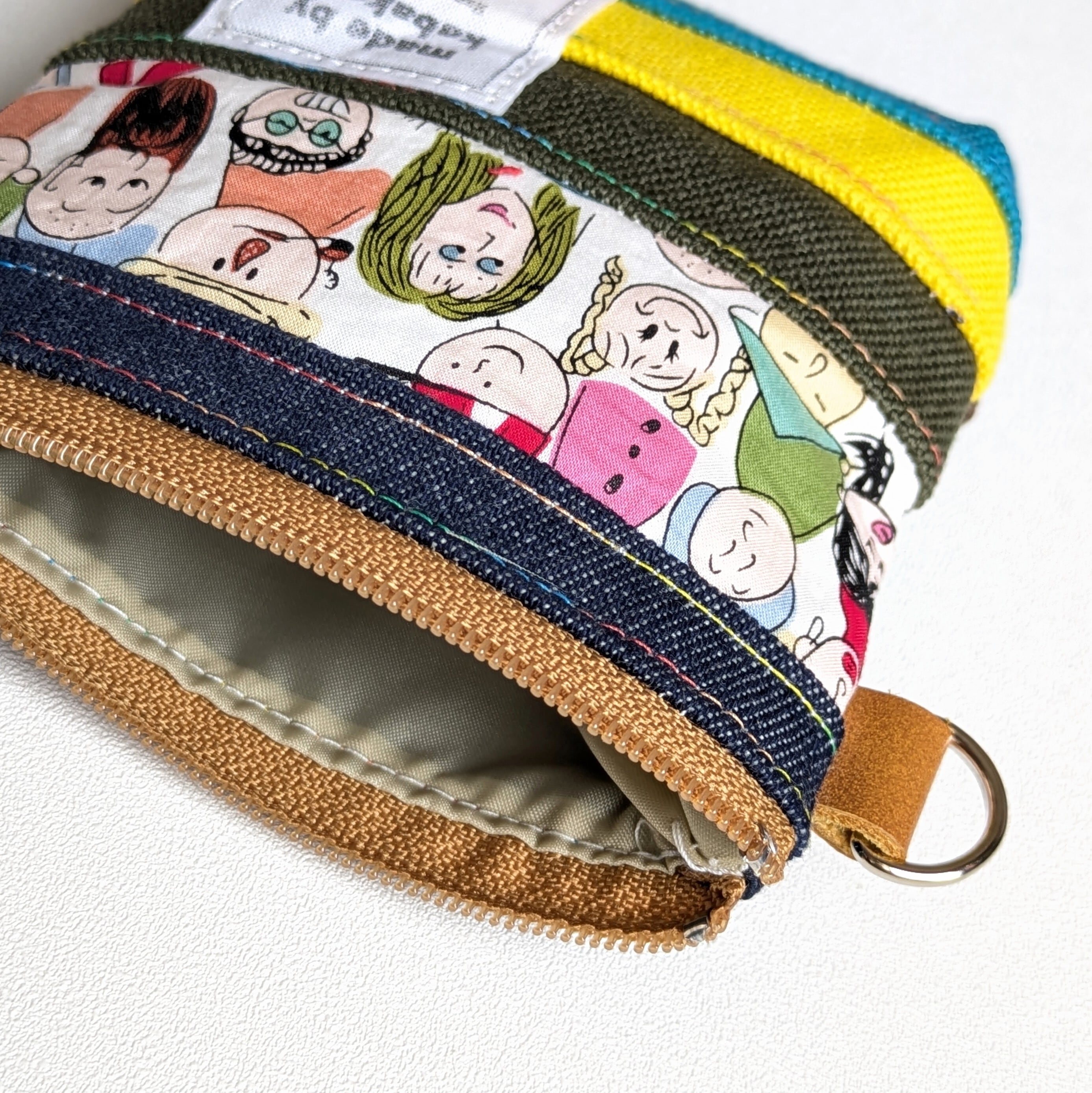 このポーチは、ショルダーやサコッシュ、ポーチなどを作るときに出る柄物生地や帆布、デニムの『はぎれ』を活用しています。