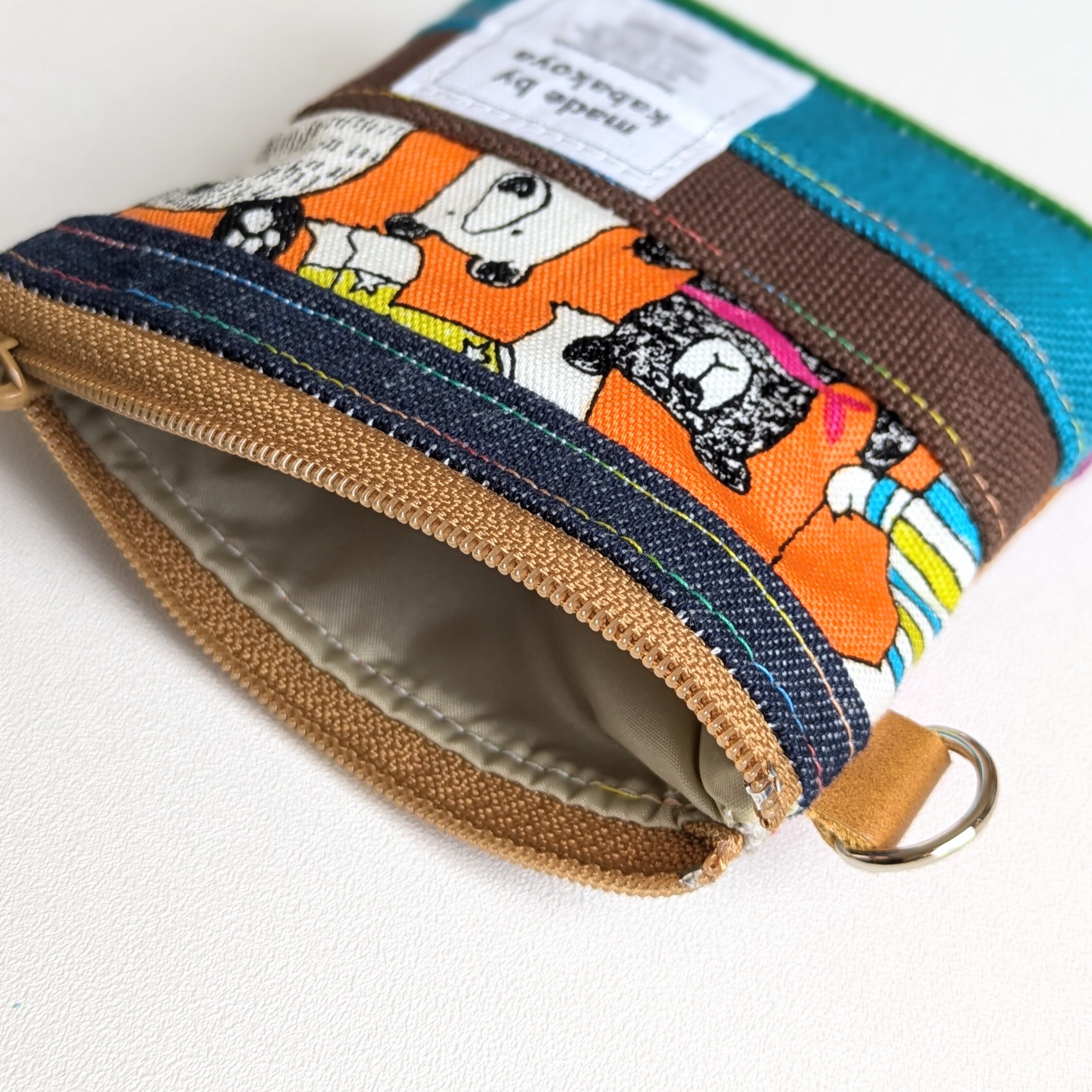 このポーチは、ショルダーやサコッシュ、ポーチなどを作るときに出る柄物生地や帆布、デニムの『はぎれ』を活用しています。