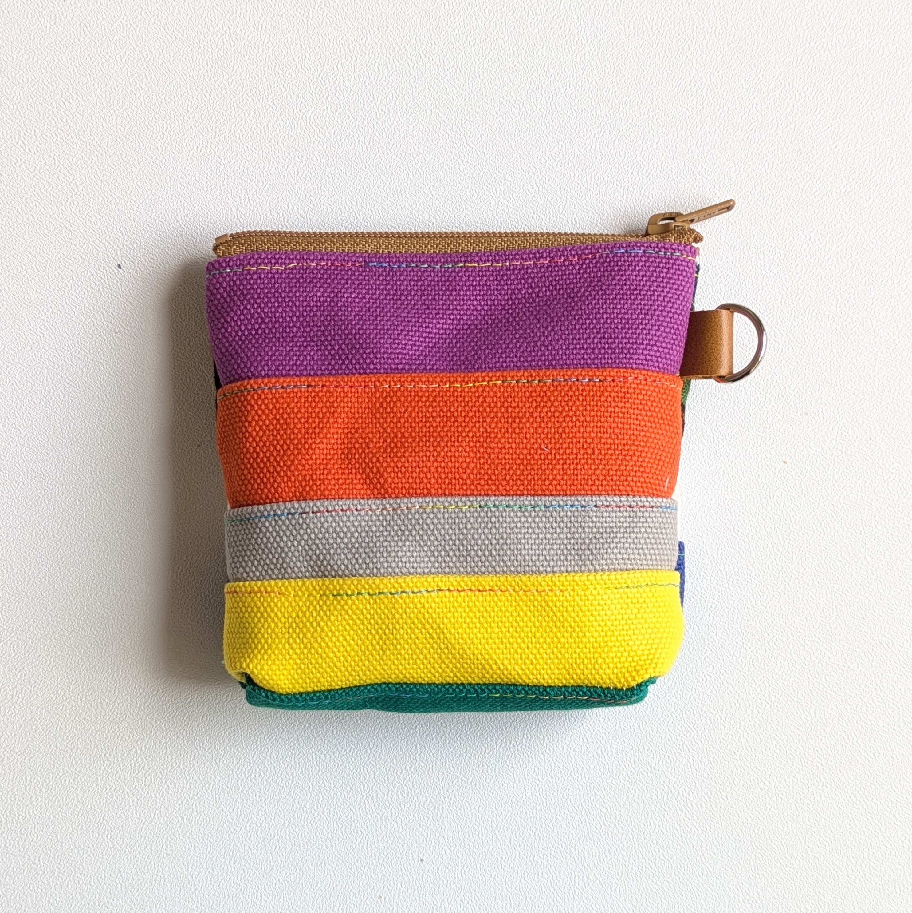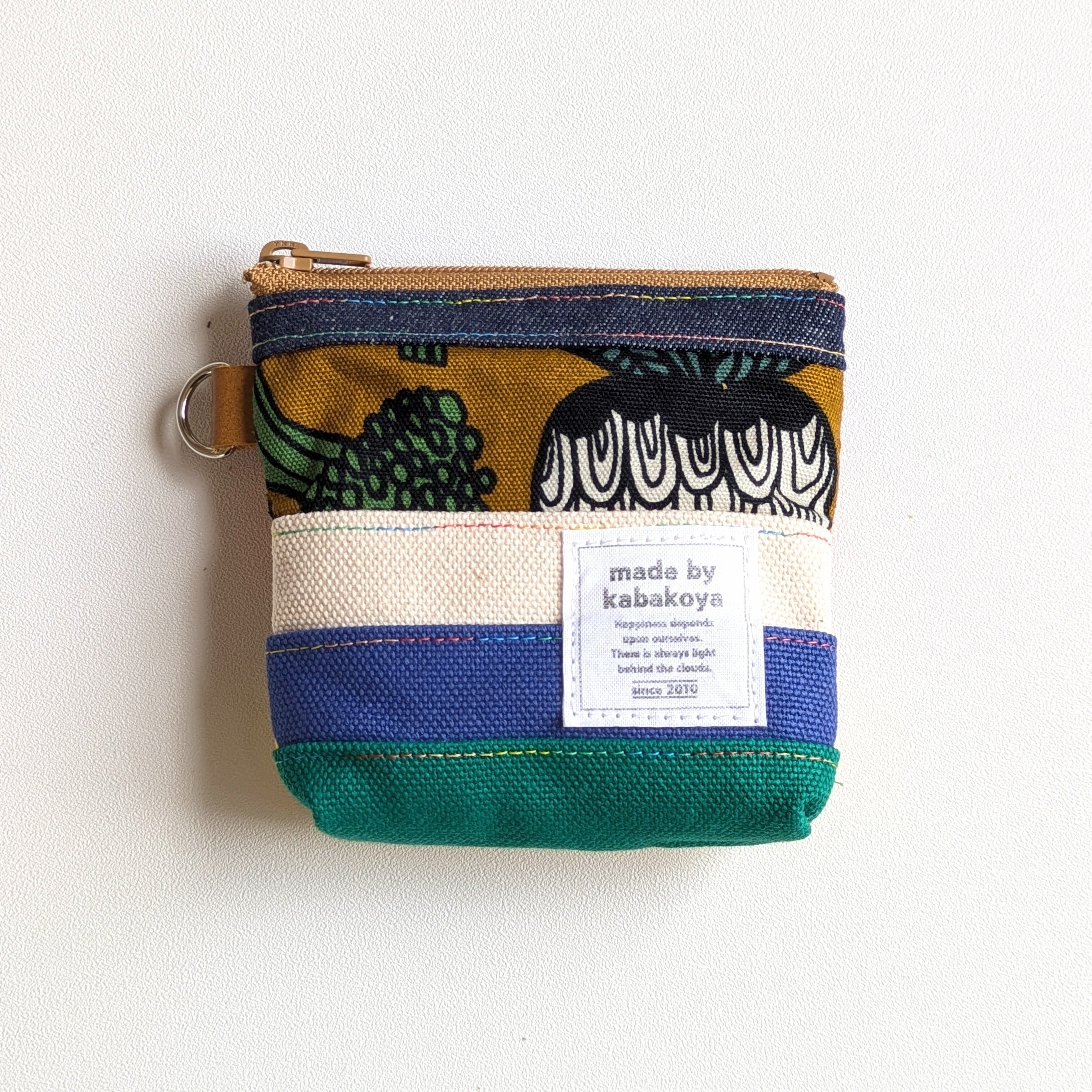 このポーチは、ショルダーやサコッシュ、ポーチなどを作るときに出る柄物生地や帆布、デニムの『はぎれ』を活用しています。