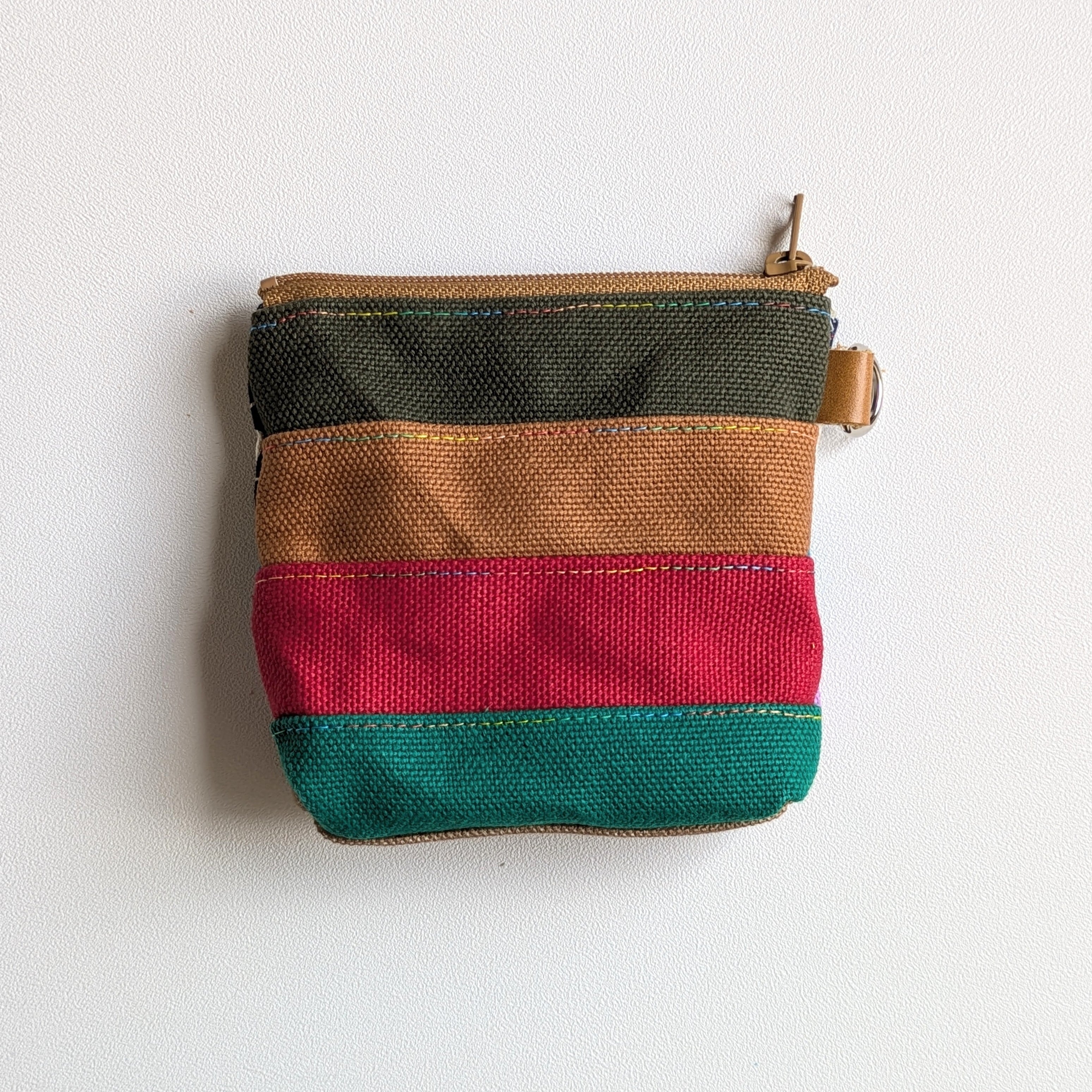 このポーチは、ショルダーやサコッシュ、ポーチなどを作るときに出る柄物生地や帆布、デニムの『はぎれ』を活用しています。