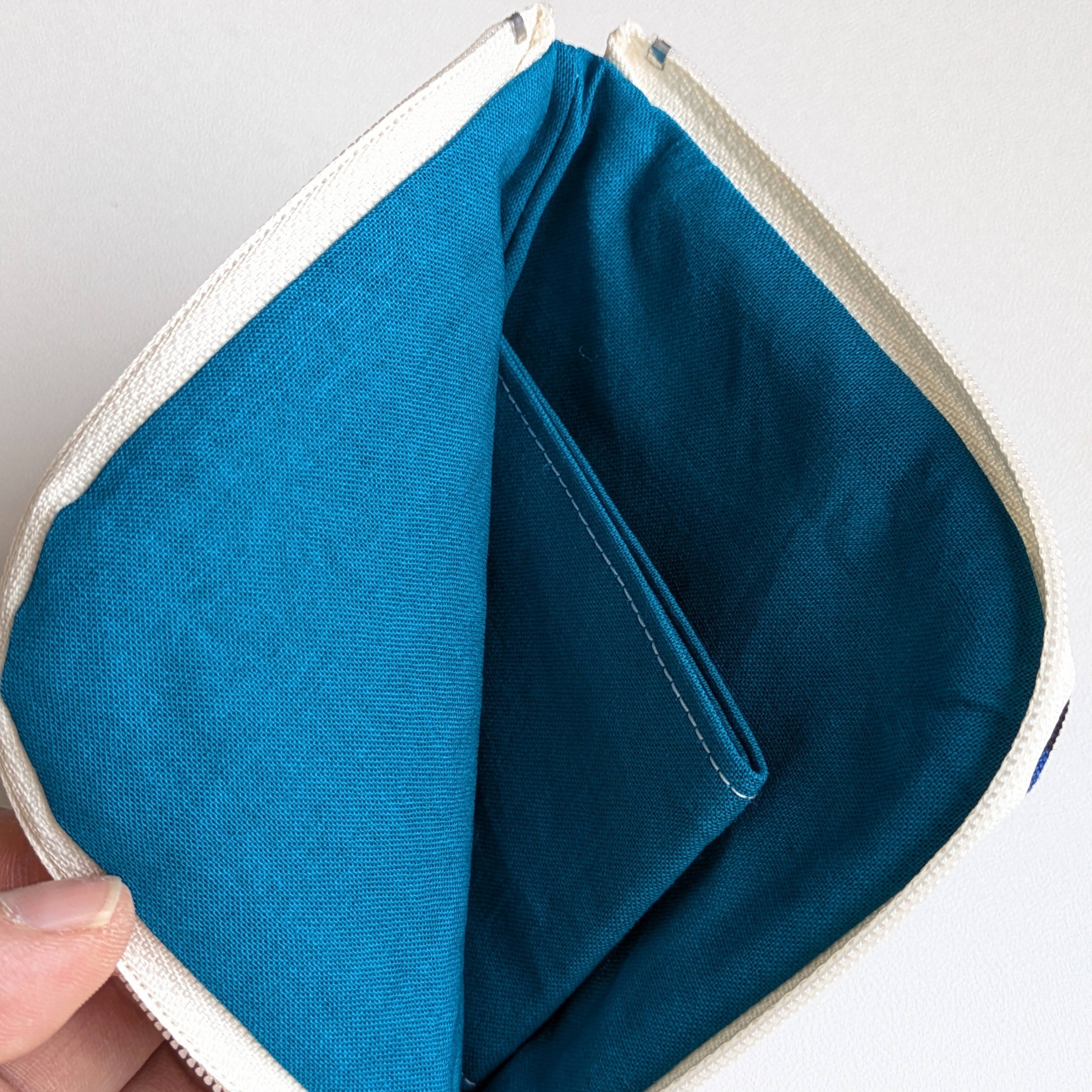 L字ファスナー仕様のフラットポーチです。