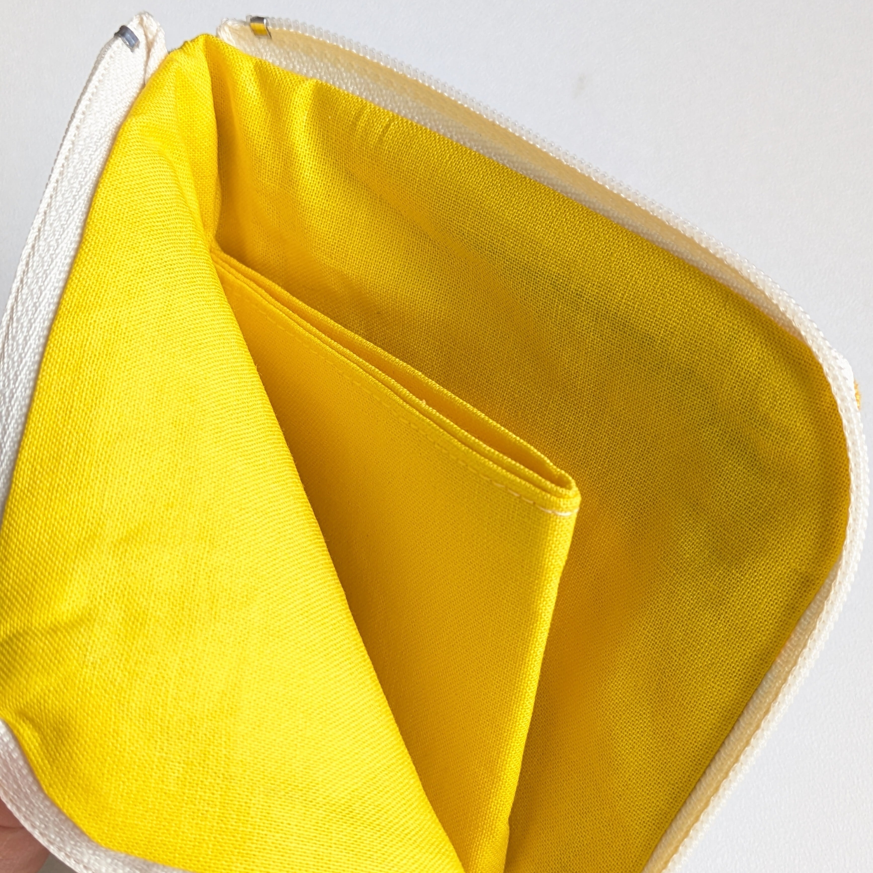 L字ファスナー仕様のフラットポーチです。