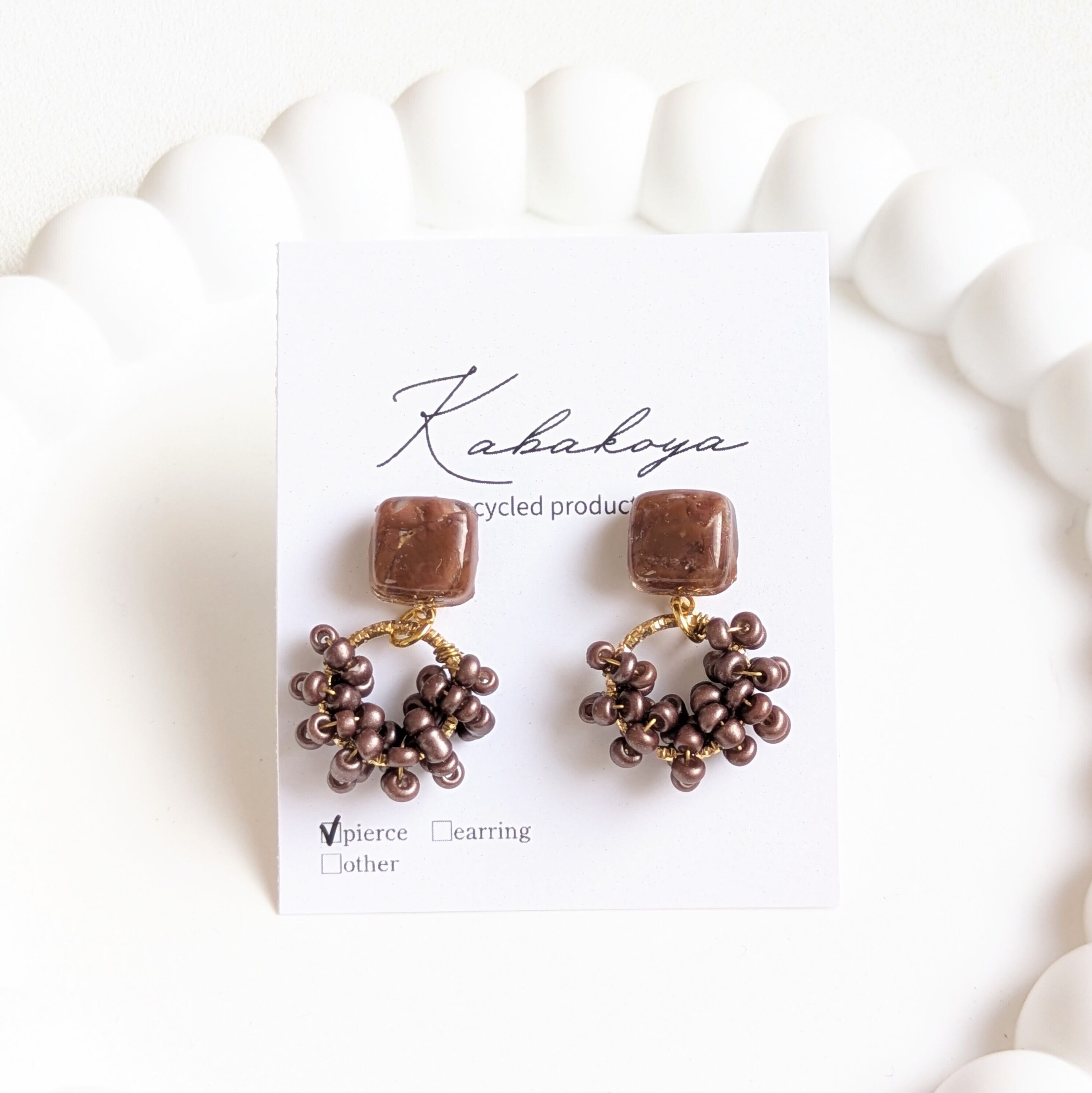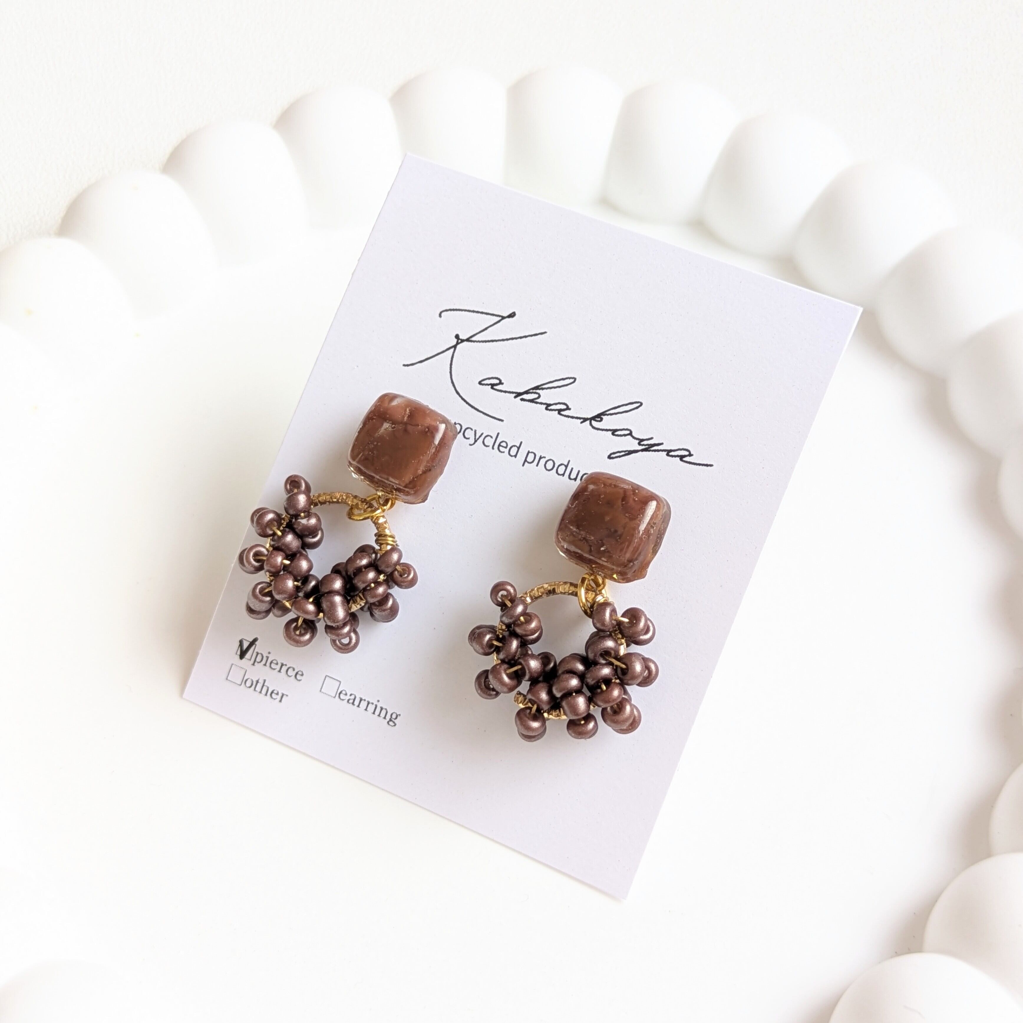 海岸で集めた海洋プラスチックのかけらをピアスにしました。