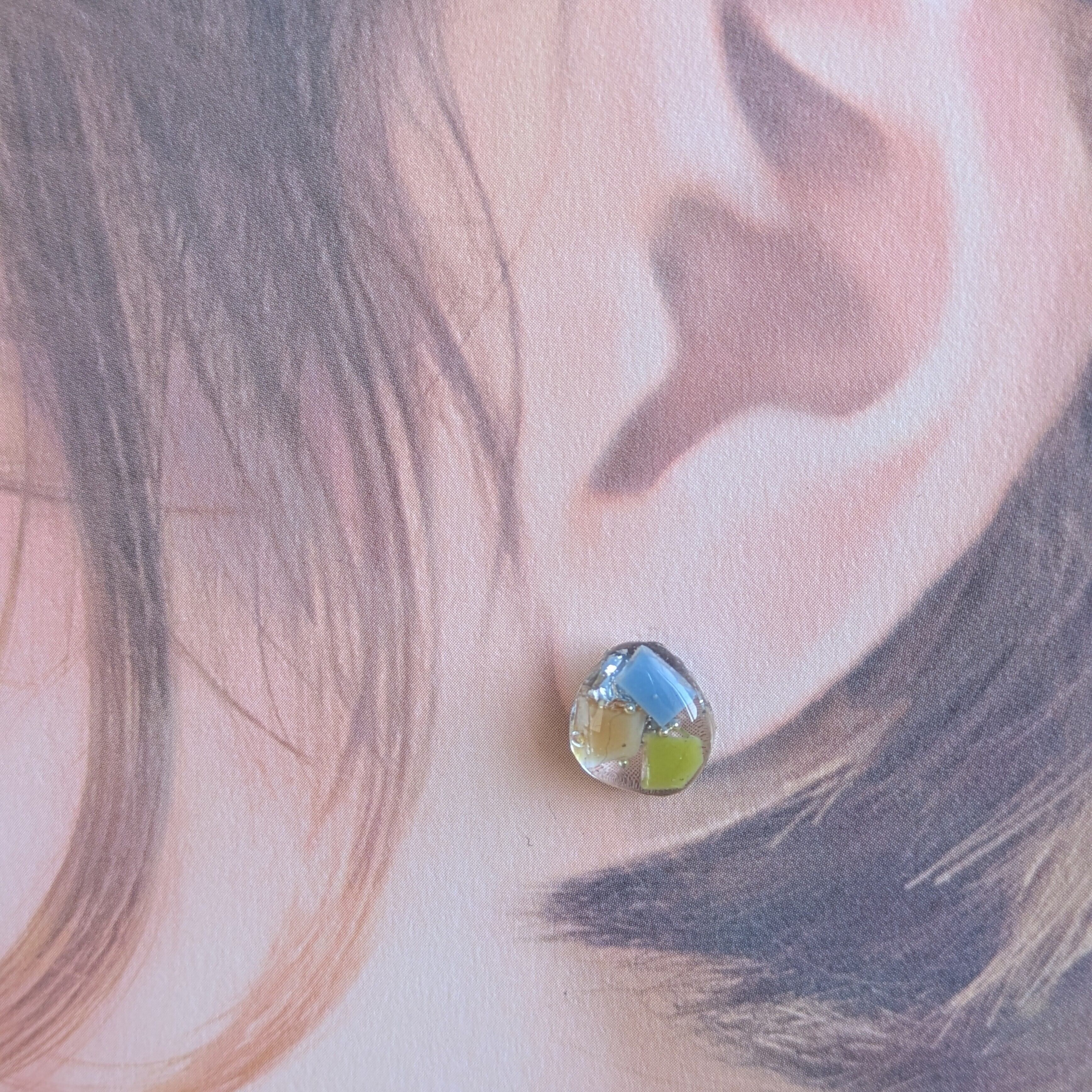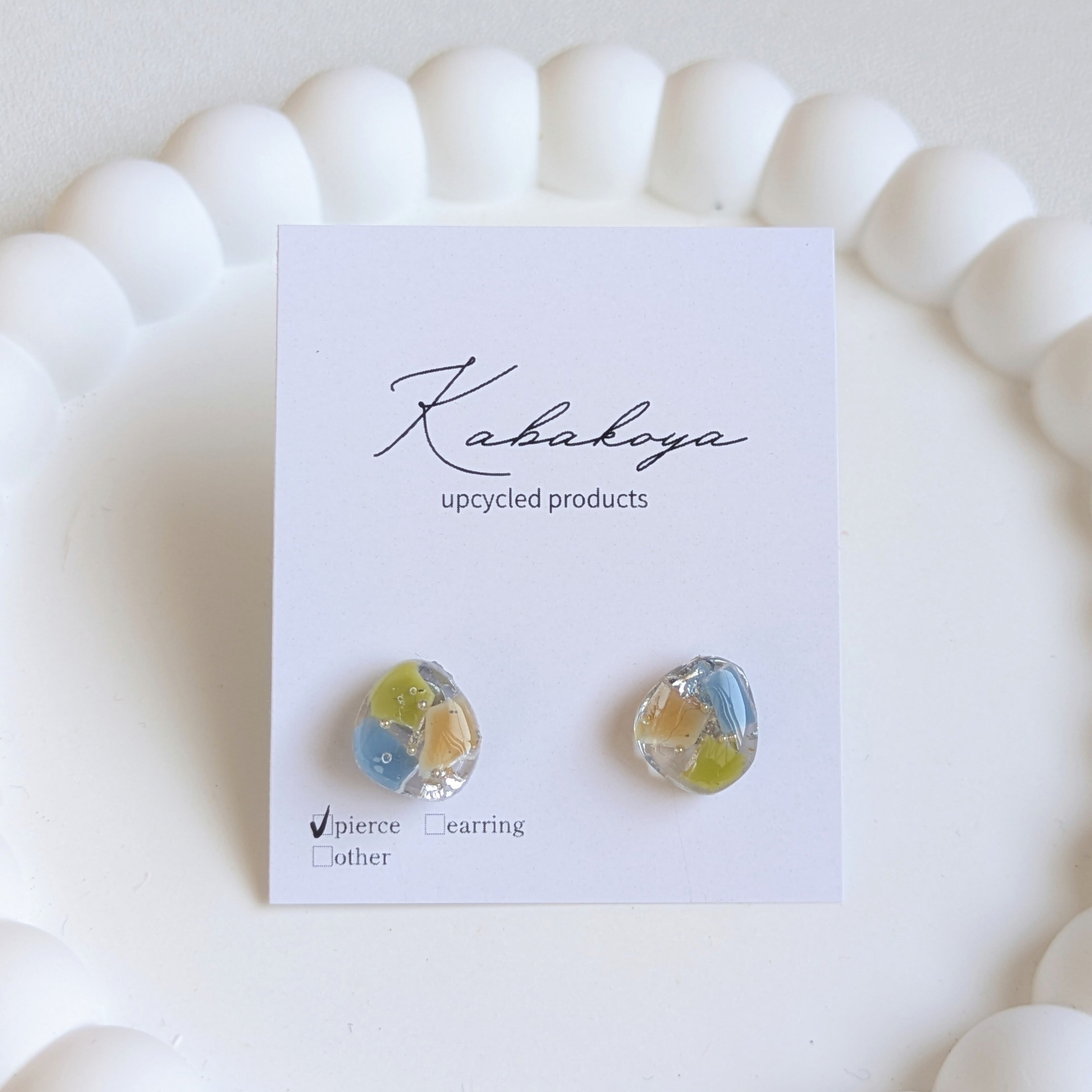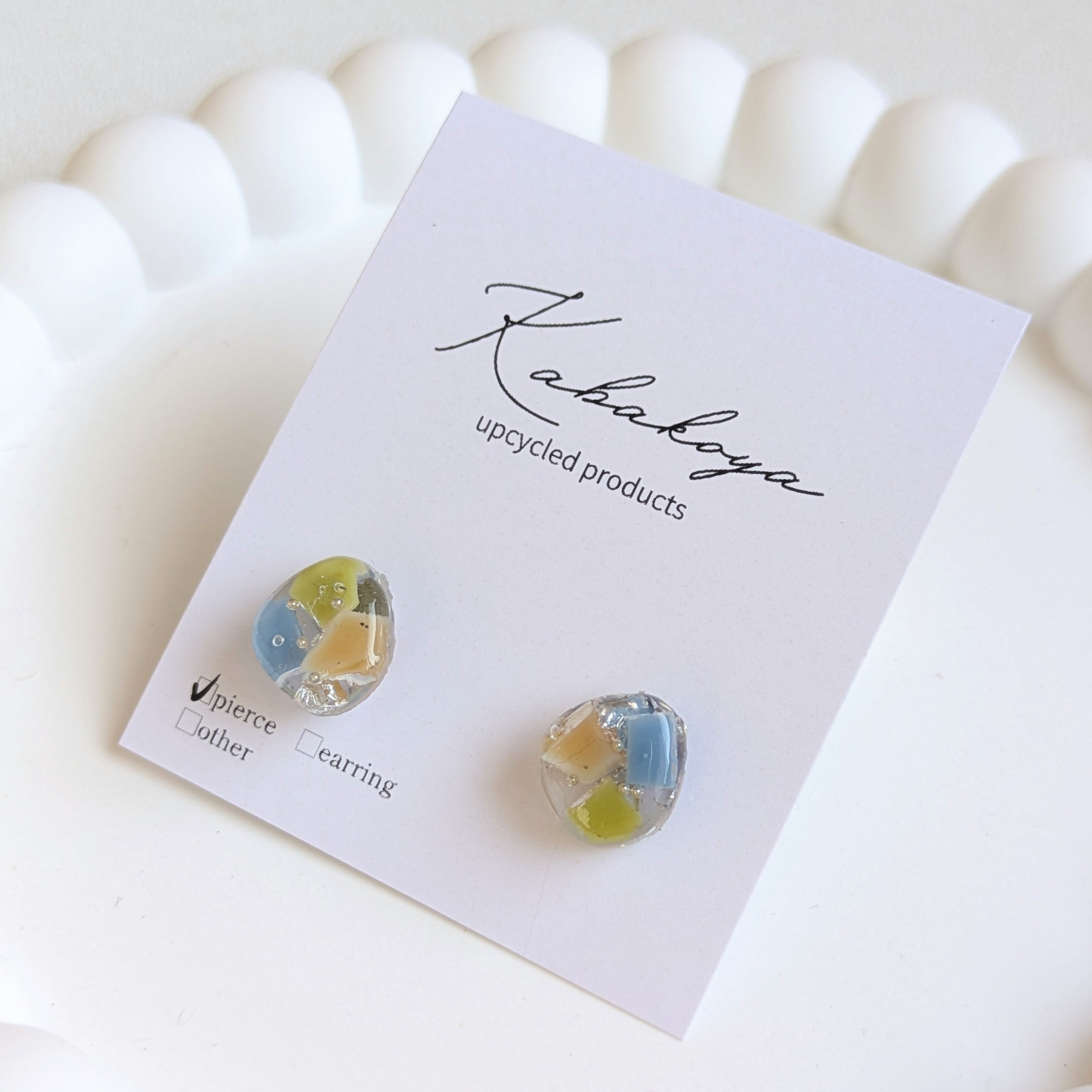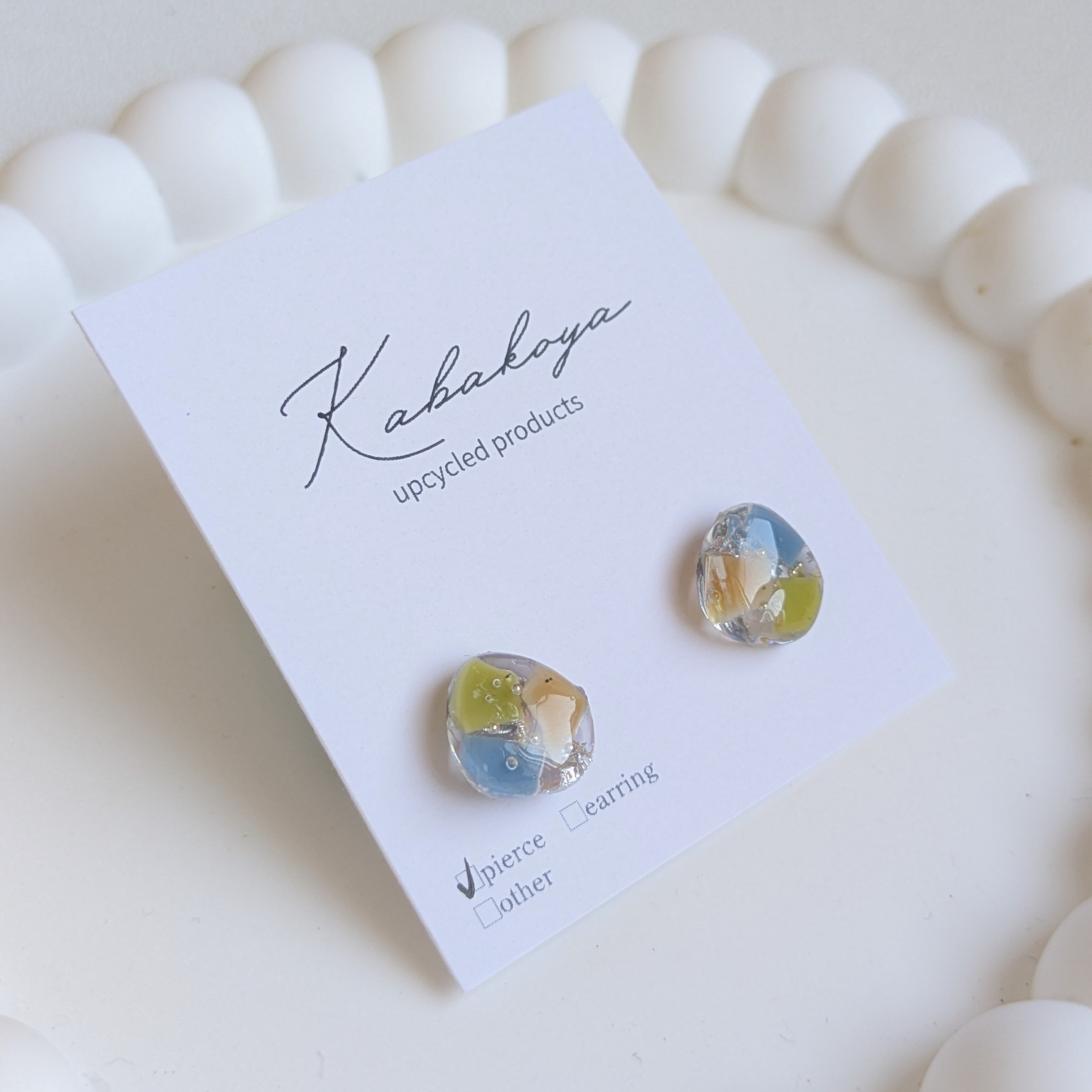 海岸で集めた海洋プラスチックのかけらをイヤリングにしました。