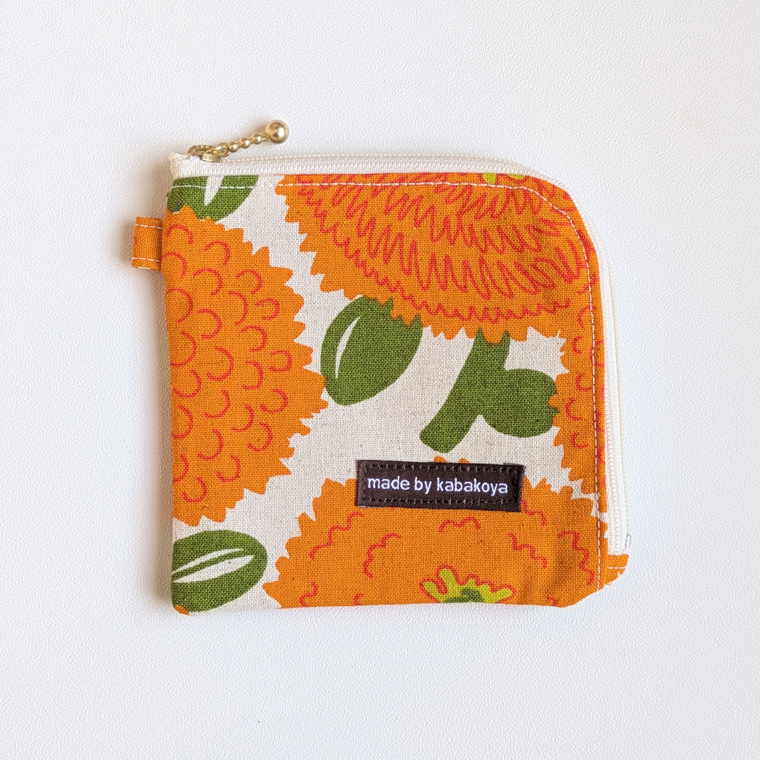 L字ファスナー仕様のフラットポーチです。