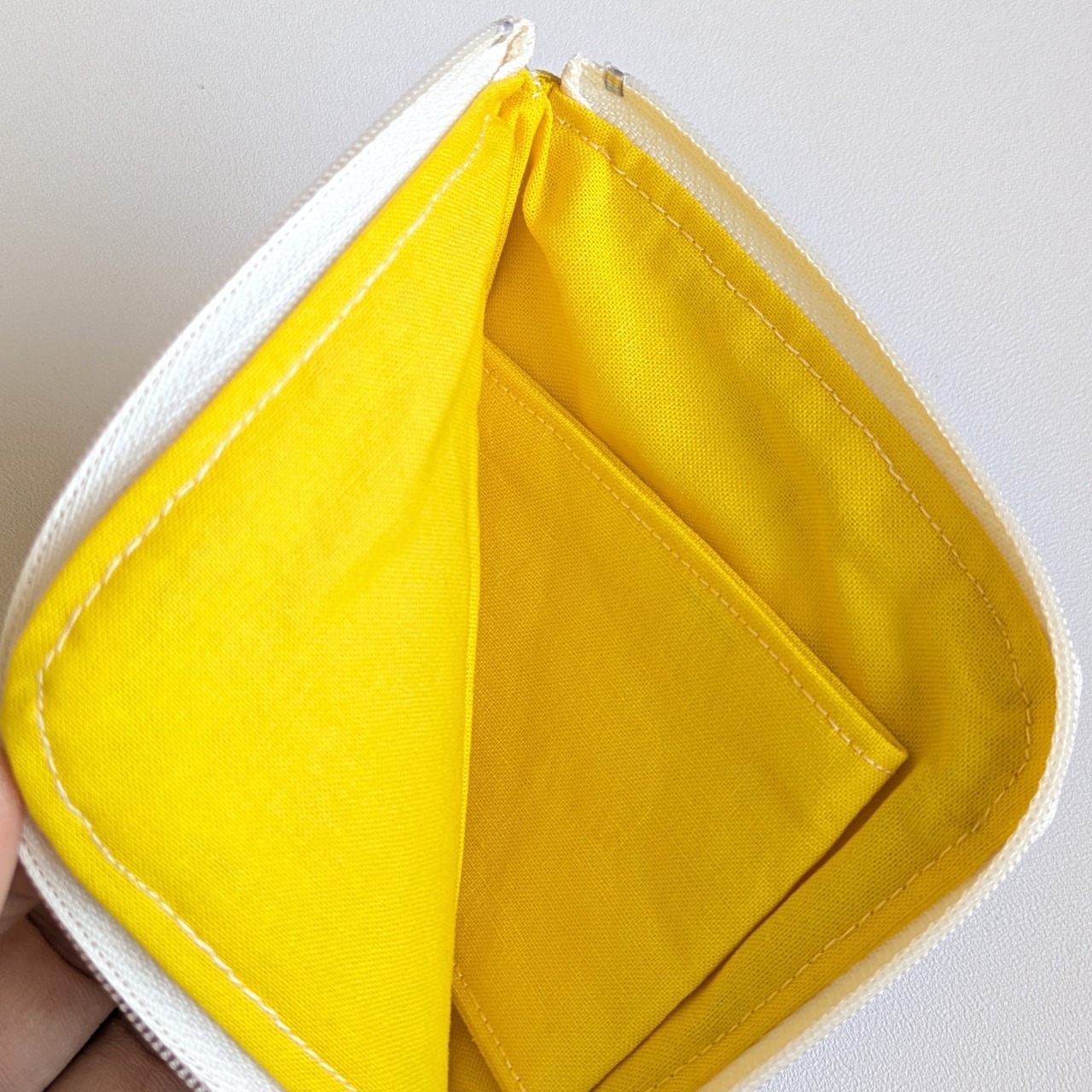 L字ファスナー仕様のフラットポーチです。
