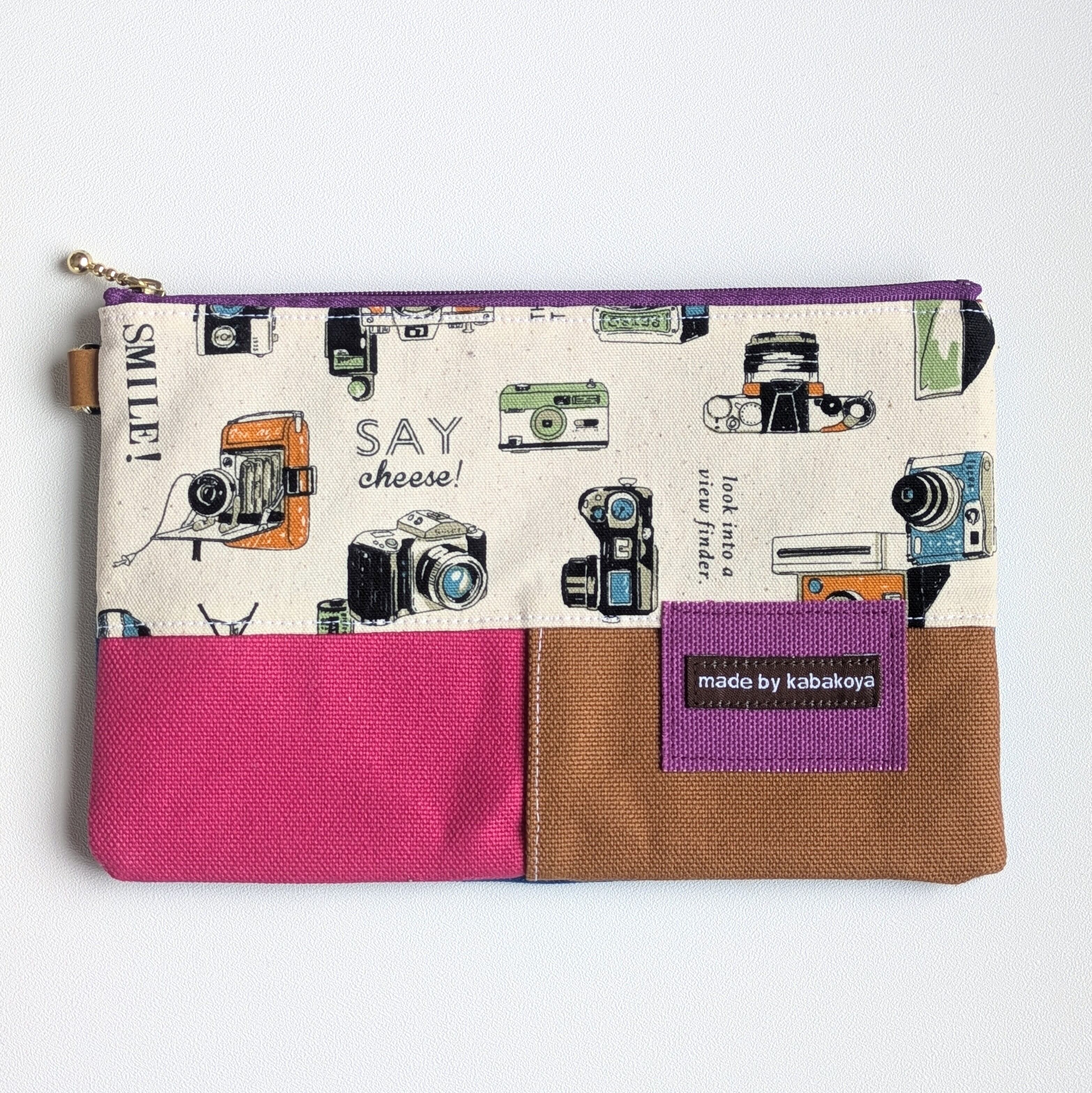 このポーチは、ショルダーやサコッシュ、ポーチなどをを作るときに出る柄物生地や帆布の『はぎれ』を活用しています。